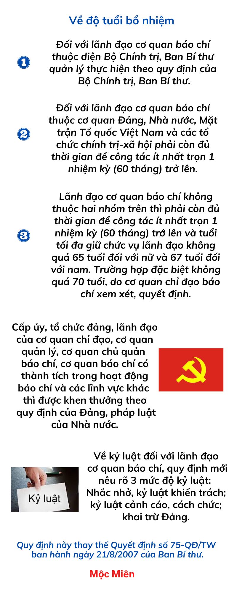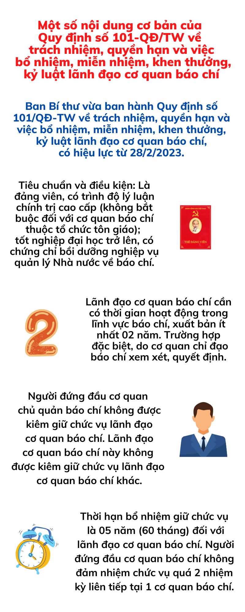 Ban Bí thư vừa ban hành Quy định số 101/QĐ-TW về trách nhiệm, quyền hạn và việc bổ nhiệm, miễn nhiệm, khen thưởng, kỷ luật lãnh đạo cơ quan báo chí.