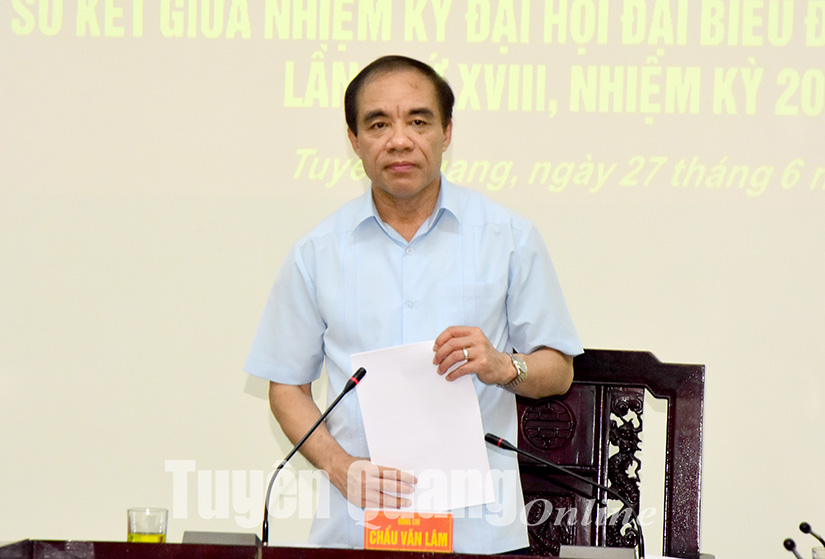 Sáng 27-6, đồng chí Chẩu Văn Lâm, Ủy viên Ban Chấp hành Trung ương Đảng, Bí thư Tỉnh ủy, Trưởng Đoàn đại biểu Quốc hội tỉnh, Bí thư Đảng ủy Quân sự tỉnh dự và chủ trì hội nghị ra Nghị quyết lãnh đạo thực hiện nhiệm vụ quân sự, quốc phòng và công tác xây dựng Đảng bộ 6 tháng cuối năm 2023; sơ kết giữa nhiệm kỳ Đại hội đại biểu Đảng bộ Quân sự tỉnh lần thứ XIII, nhiệm kỳ 2020 – 2025.