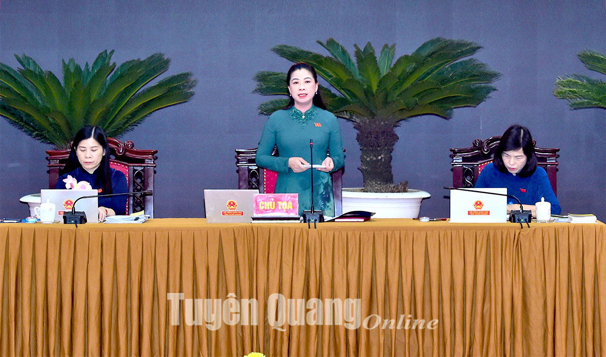 Đồng chí Lê Thị Kim Dung, Phó Bí thư Thường trực Tỉnh ủy, Chủ tịch HĐND tỉnh kết luận phiên họp. Ảnh: Thanh Phúc