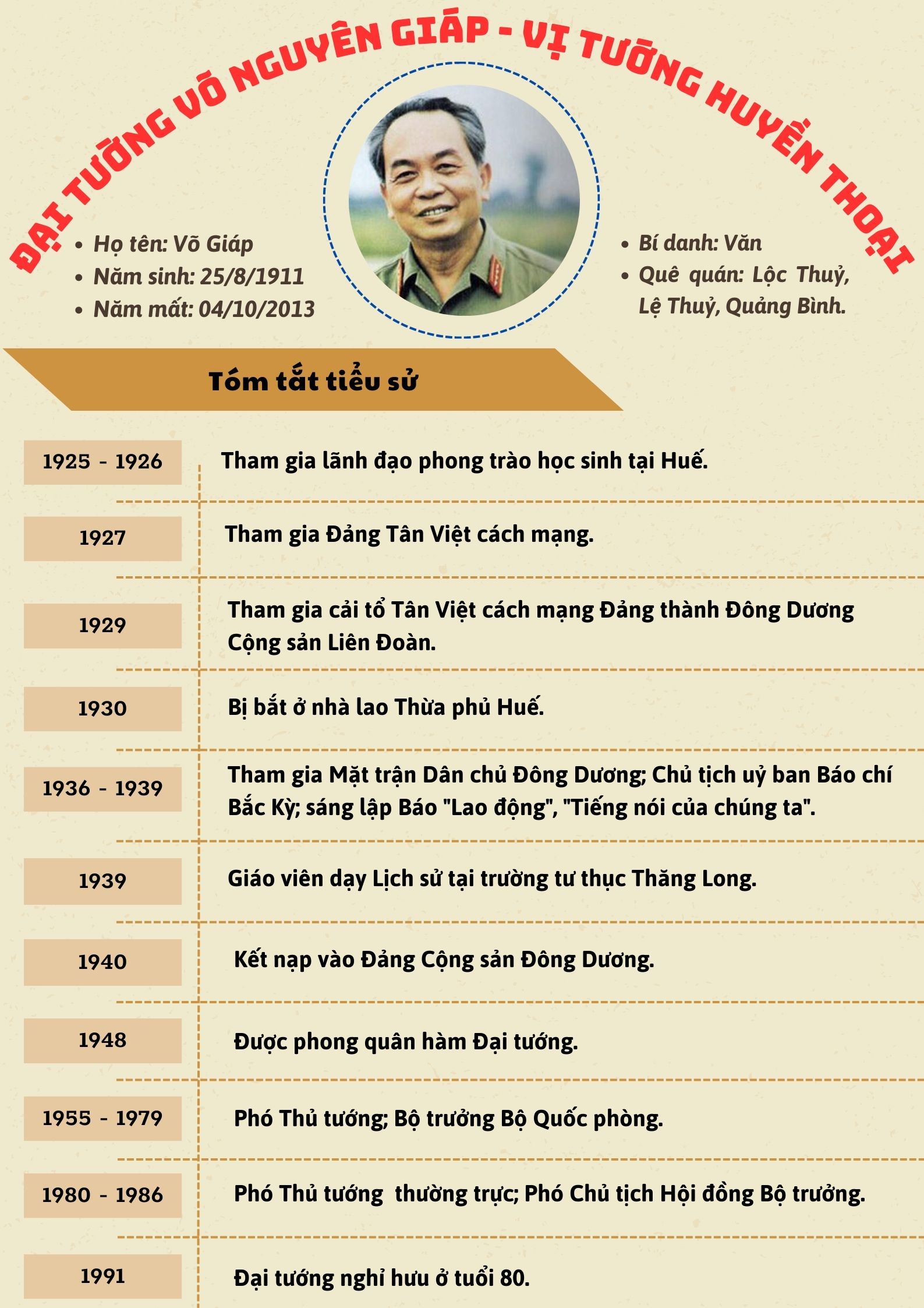 Đại tướng Võ Nguyên Giáp sinh ngày 25/8/1911 tại xã Lộc Thuỷ, huyện Lệ Thuỷ, tỉnh Quảng Bình. Sinh ra trong một gia đình nhà nho, giàu truyền thống yêu nước, một miền quê giàu truyền thống lịch sử, văn hóa và cách mạng, Đồng chí đã sớm có lòng yêu nước nồng nàn và thương dân sâu sắc.