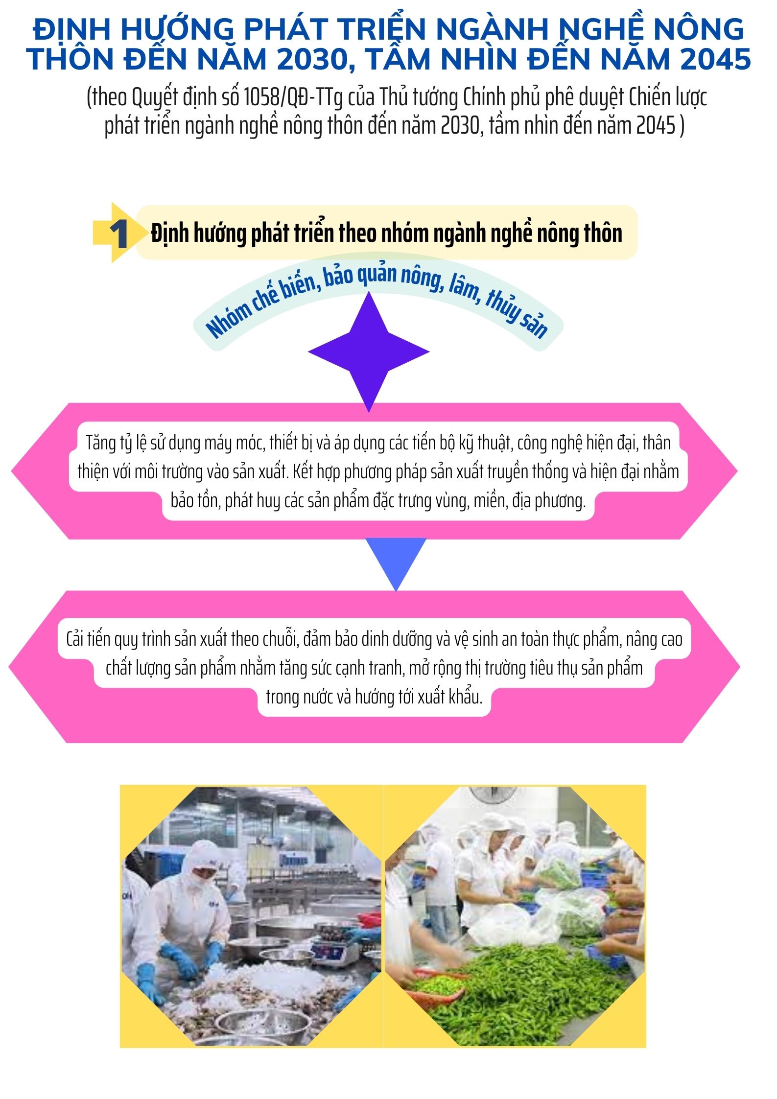 Ngày 14/9/2023, Thủ tướng Chính phủ ban hành Quyết định số 1058/QĐ-TTg về việc phê duyệt Chiến lược phát triển ngành nghề nông thôn đến năm 2045 với định hướng phát triển như sau: