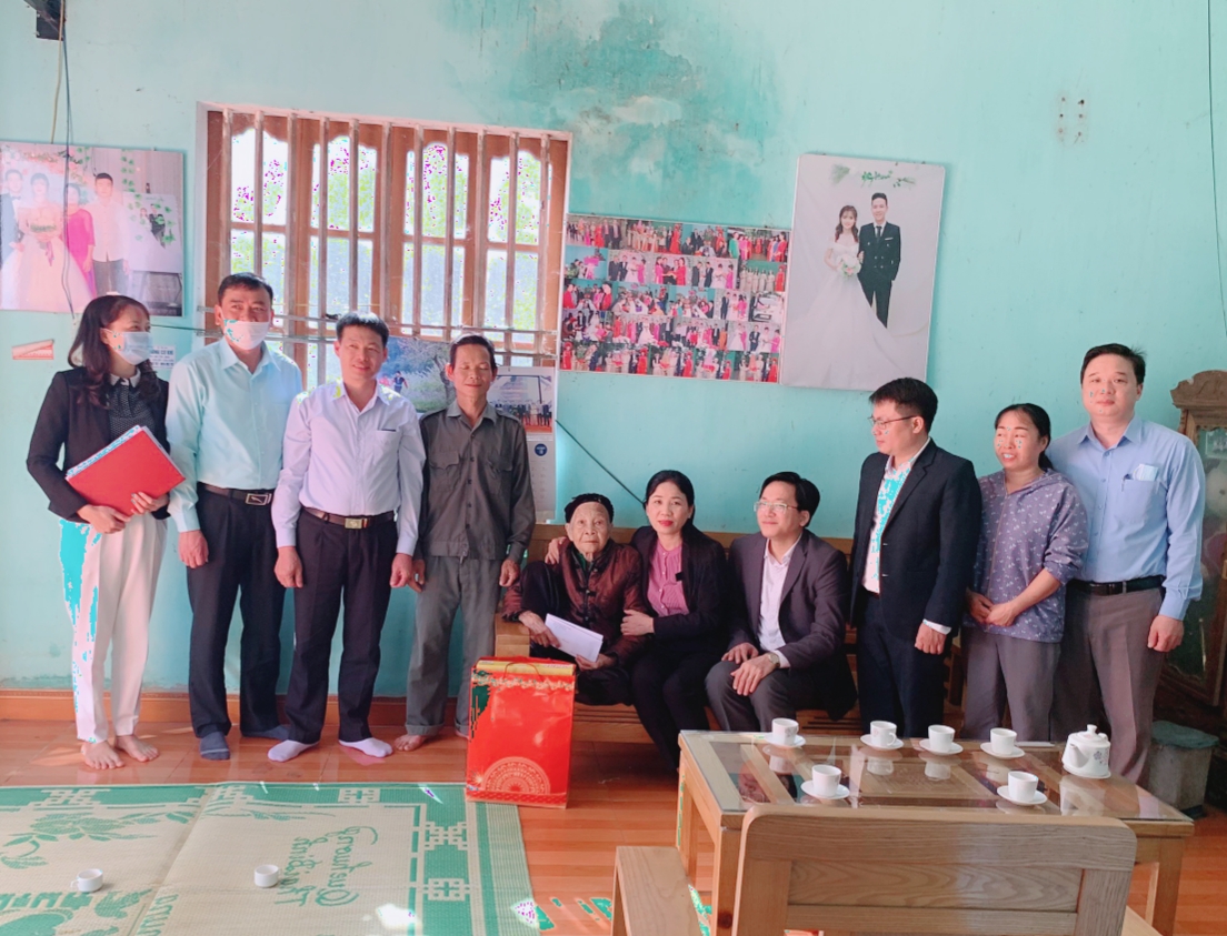 Sở Lao động, Thương binh - Xã hội thăm và trao tặng kinh phí vật liệu ủng hộ làm mới nhà ở cho hộ gia đình bà Trần Thị Quý là mẹ liệt sĩ Lâm Văn Tiến, thôn Yên Thái, xã Hoàng Khai, huyện Yên Sơn. Nguồn ảnh: Soldtbxh.tuyenquang.gov.vn