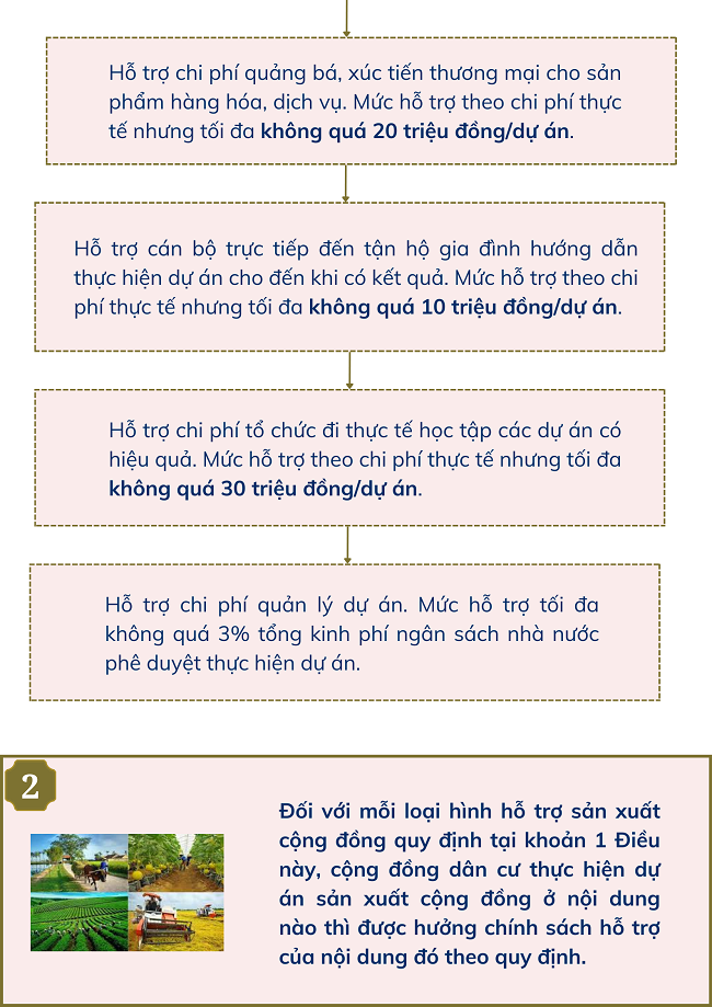 Ngày 07/7/2023 Hội đồng nhân dân tỉnh ban hành Nghị quyết số 10/2023/NQ-HĐND về Quy định về mức hỗ trợ thực hiện dự án phát triển sản xuất liên kết theo chuỗi giá trị, dự án phát triển sản xuất cộng đồng thuộc các Chương trình mục tiêu quốc gia trên địa bàn tỉnh Tuyên Quang, giai đoạn 2021-2025 với mức hỗ trợ như sau: