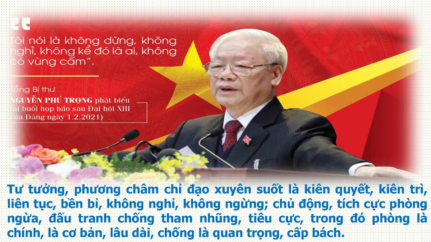 Trong cuốn sách “Kiên quyết, kiên trì đấu tranh phòng, chống tham nhũng, tiêu cực, góp phần xây dựng Đảng và Nhà nước ta ngày càng trong sạch, vững mạnh”, Tổng Bí thư Nguyễn Phú Trọng nhấn mạnh trong công tác phòng chống tham nhũng: Xây là cơ bản, chống là quan trọng, xây cũng là để chống mà chống chính là để xây, để cảnh tỉnh, cảnh báo, ngăn ngừa, răn đe; cần có cơ chế kiểm soát quyền lực cho tốt, nhốt quyền lực vào trong lồng cơ chế, kiểm tra ngang, kiểm tra dọc, từ trên xuống, từ dưới lên, nhân dân giám sát, từng đoàn thể phải có cơ chế kiểm tra, giám sát, chống lạm quyền.