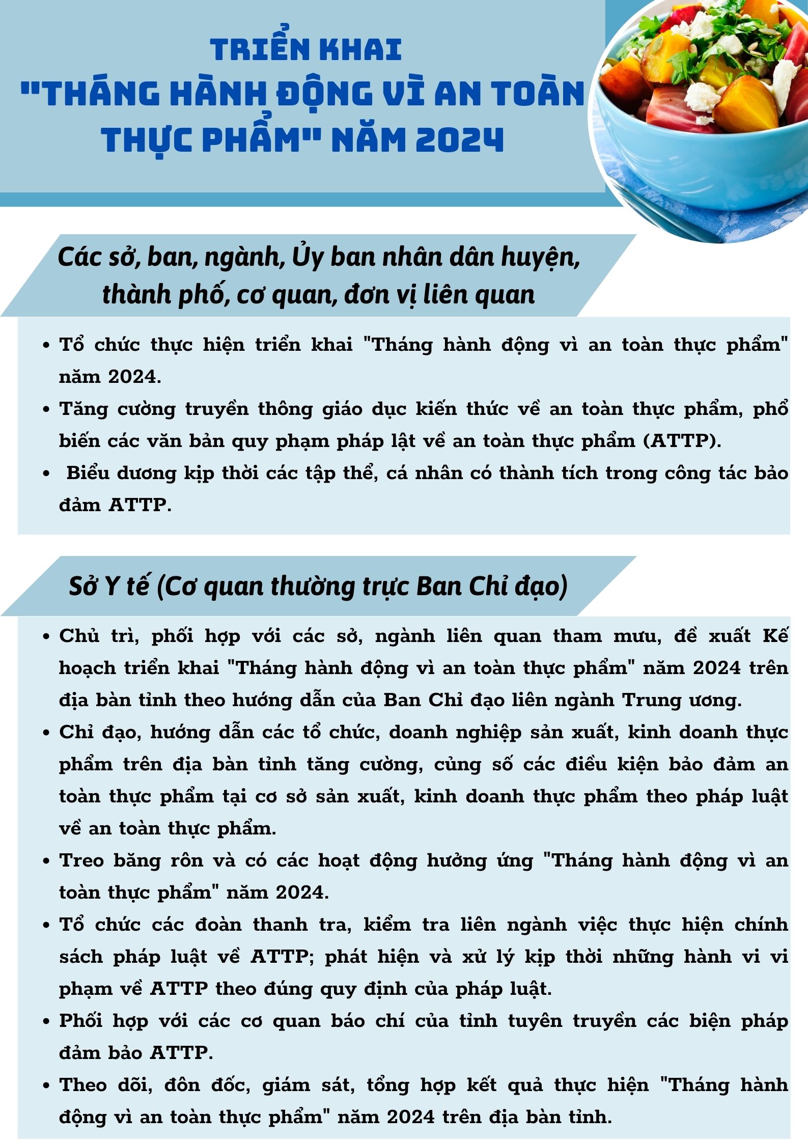 Ngày 28/3/2024 Ủy ban nhân dân tỉnh Tuyên Quang ban hành Văn bản số 1213/UBND-THVX triển khai "Tháng hành động vì an toàn thực phẩm" năm 2024. Trong đó yêu cầu Ủy bân nhân dân huyện, thành phố, các cơ quan, đơn vị liên quan thực hiện tốt một số nội dung sau: