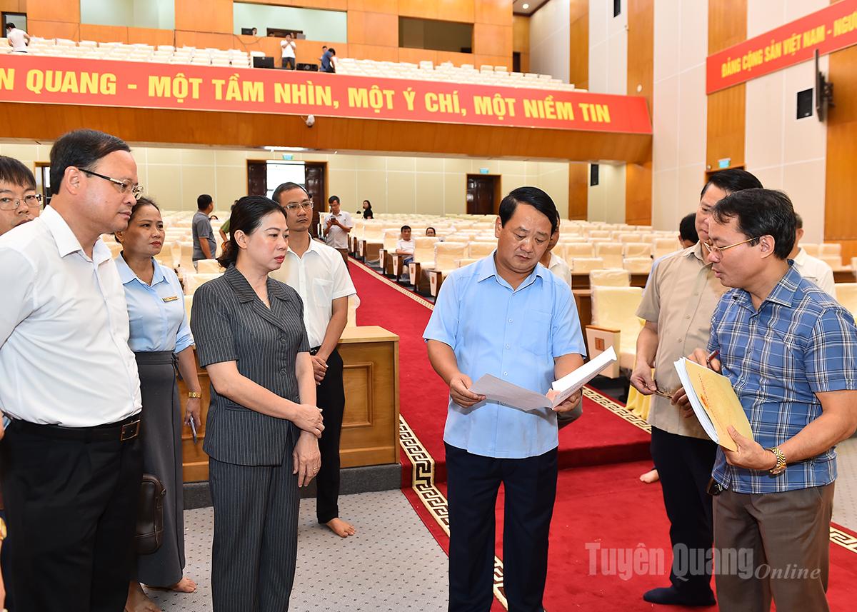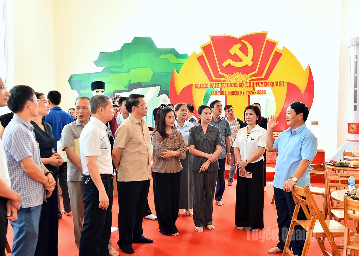 Đồng chí Bí thư Tỉnh ủy và đoàn công tác đã kiểm tra nhiều hạng mục quan trọng phục vụ Đại hội, từ công tác trang trí khánh tiết tại Trung tâm Hội nghị tỉnh, bố trí hội trường, phòng họp, khu vực đón tiếp đại biểu, đến các phần việc của các tiểu ban. Đồng chí yêu cầu các ngành, đơn vị tiếp tục rà soát từng chi tiết cụ thể, bảo đảm không để xảy ra bất kỳ sơ suất nào. Từ hội trường chính đến các phòng họp nhỏ phải trang trọng, đúng nguyên tắc, thể hiện nét đặc trưng của Tuyên Quang.