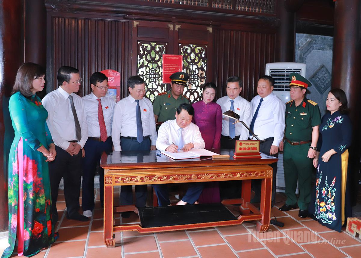 Ghi lưu bút vào Sổ truyền thống tại Đền thờ Chủ tịch Hồ Chí Minh, Bí thư Tỉnh ủy Hầu A Lềnh bày tỏ: Trong không khí vui tươi, phấn khởi của Đảng bộ, chính quyền và Nhân dân các dân tộc Tuyên Quang hướng về Đại hội đại biểu Đảng bộ tỉnh lần thứ I, nhiệm kỳ 2025 – 2030, Đoàn đại biểu vô cùng xúc động, tự hào được dâng hương báo công với Bác. Trước Anh linh Bác kính yêu, Đoàn đại biểu dự Đại hội nguyện phát huy cao độ trí tuệ, thần trách nhiệm, sự đoàn kết, thống nhất để hoàn thành tốt nhất nhiệm vụ của Đại hội, định hướng cho một giai đoạn phát triển mới của tỉnh nhà, thực hiện thành công mục tiêu đến năm 2030 Tuyên Quang là tỉnh phát triển khá, toàn diện, bền vững, xứng đáng với vị thế quê hương cách mạng, tỉnh Anh hùng và hoàn thành trọng trách mà Đảng bộ, Nhân dân các dân tộc trong tỉnh giao phó, cùng cả nước vững bước trong Kỷ nguyên mới – Kỷ nguyên vươn mình của dân tộc Việt Nam.