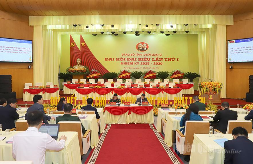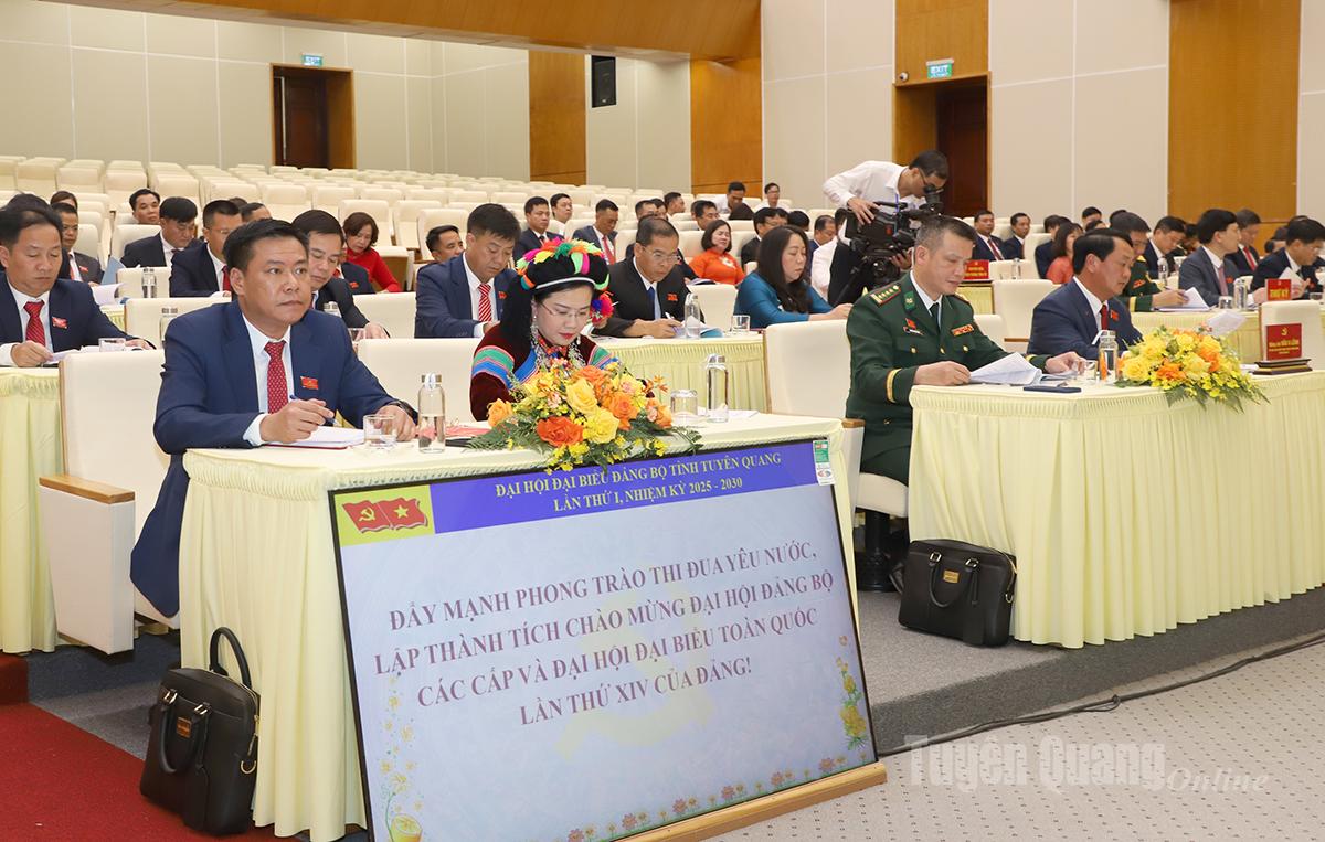 Đại biểu thảo luận về 9 vấn đề trọng tâm trong công tác xây dựng Đảng, tổ chức bộ máy, cán bộ và thúc đẩy phát triển kinh tế - xã hội như: Tham mưu sắp xếp tổ chức bộ máy các cơ quan, đơn vị, địa phương đảm bảo tinh gọn, hoạt động hiệu năng, hiệu lực, hiệu quả; phát triển sản xuất nông, lâm nghiệp, hàng hóa theo chuỗi liên kết, đẩy mạnh ứng dụng khoa học công nghệ nhằm nâng cao chất lượng, giá trị, hiệu quả bền vững ngành Nông nghiệp và Môi trường tỉnh Tuyên Quang đến năm 2030; một số giải pháp đẩy mạnh ứng dụng khoa học, công nghệ và chuyển đổi số trên địa bàn tỉnh luyên Quang - động lực then chốt cho phát triển nhanh và bền vững; khai thác tiềm năng, lợi thế để đẩy mạnh phát triển du lịch trở thành ngành kinh tế quan trọng của tỉnh; một số giải pháp phát triển giáo dục và đào tạo bền vững trên địa bàn tỉnh Tuyên Quang, giai đoạn 2025-2030; nâng cao chất lượng công tác bảo vệ, chăm sóc sức khỏe cho nhân dân; nâng cao chất lượng sinh hoạt cấp ủy, chi bộ và xây dựng chi bộ "4 tốt"; giải pháp triển khai thực hiện các chính sách dân tộc, tôn giáo trong tình hình mới; xây dựng tố chức cơ sở Đảng trong sạch, vững mạnh ở các chi bộ vùng biên giới.