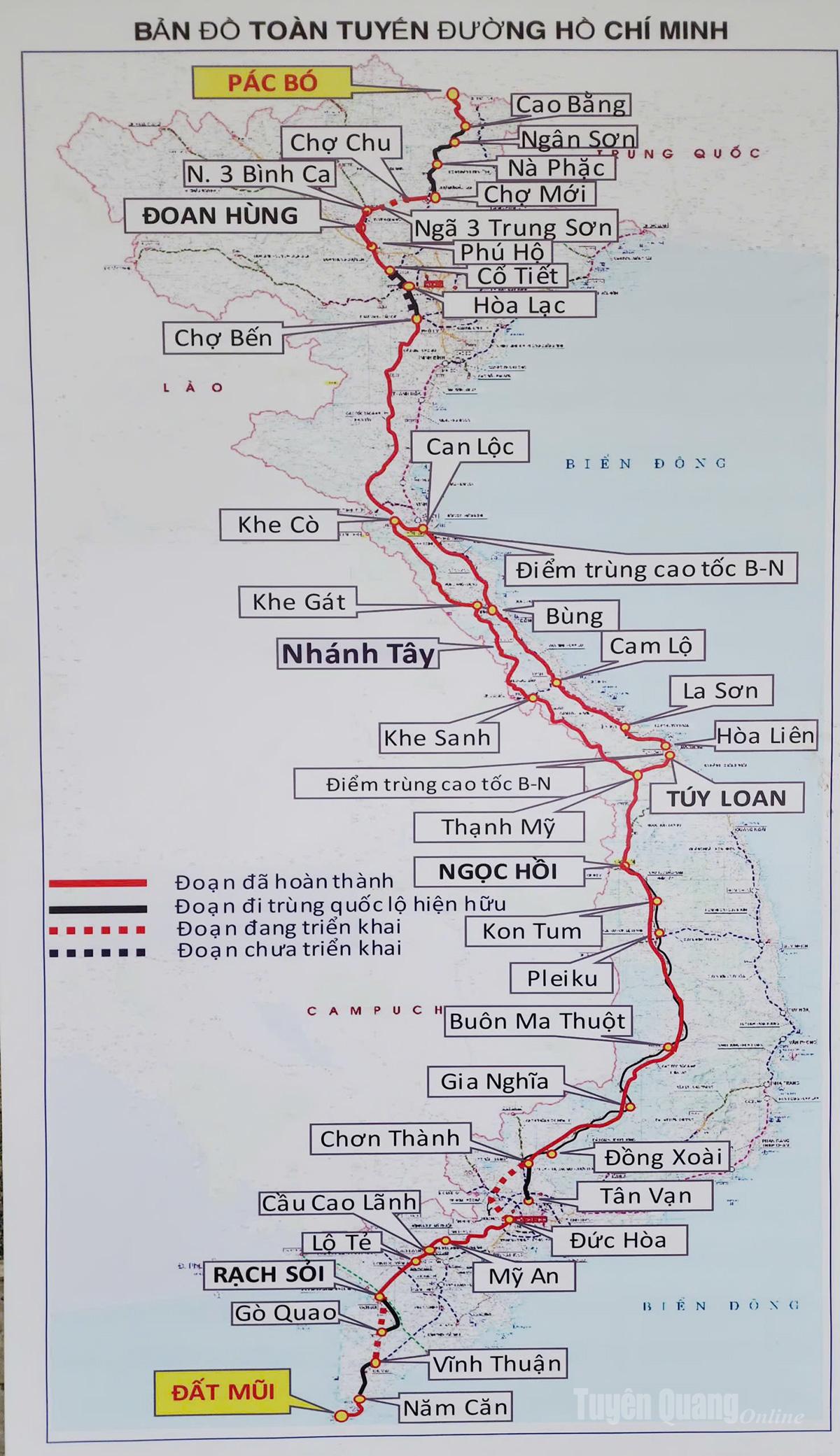 Bản đồ toàn cảnh tuyến đường Hồ Chí Minh. |
