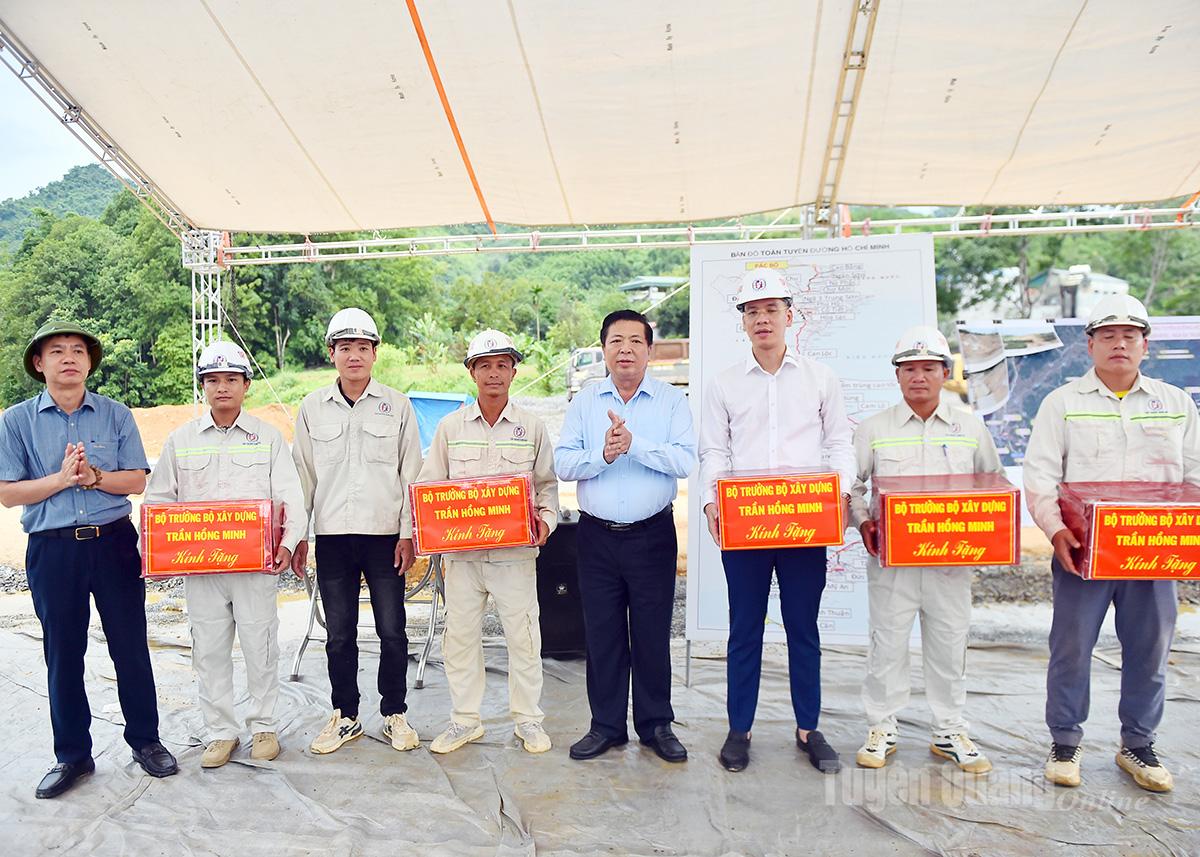 Bộ trưởng Bộ Xây dựng Trần Hồng Minh tặng quà cho nhà thầu, công nhân xây dựng Dự án đường Hồ Chí Minh đoạn Chợ Chu - Ngã ba Trung Sơn |