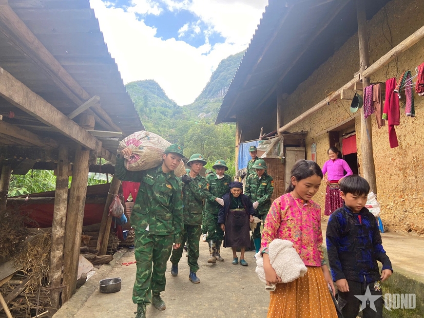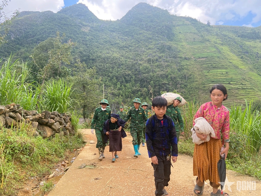 Một số hình ảnh bộ đội biên phòng Lũng Cú giúp nhân dân di dời người và tài sản đến nơi an toàn. |