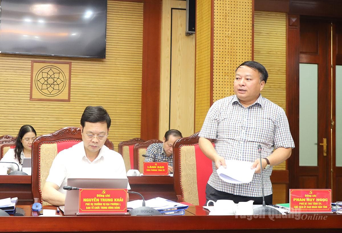 Phó Bí thư Tỉnh ủy, Chủ tịch UBND tỉnh Phan Huy Ngọc phát biểu tại hội nghị. |