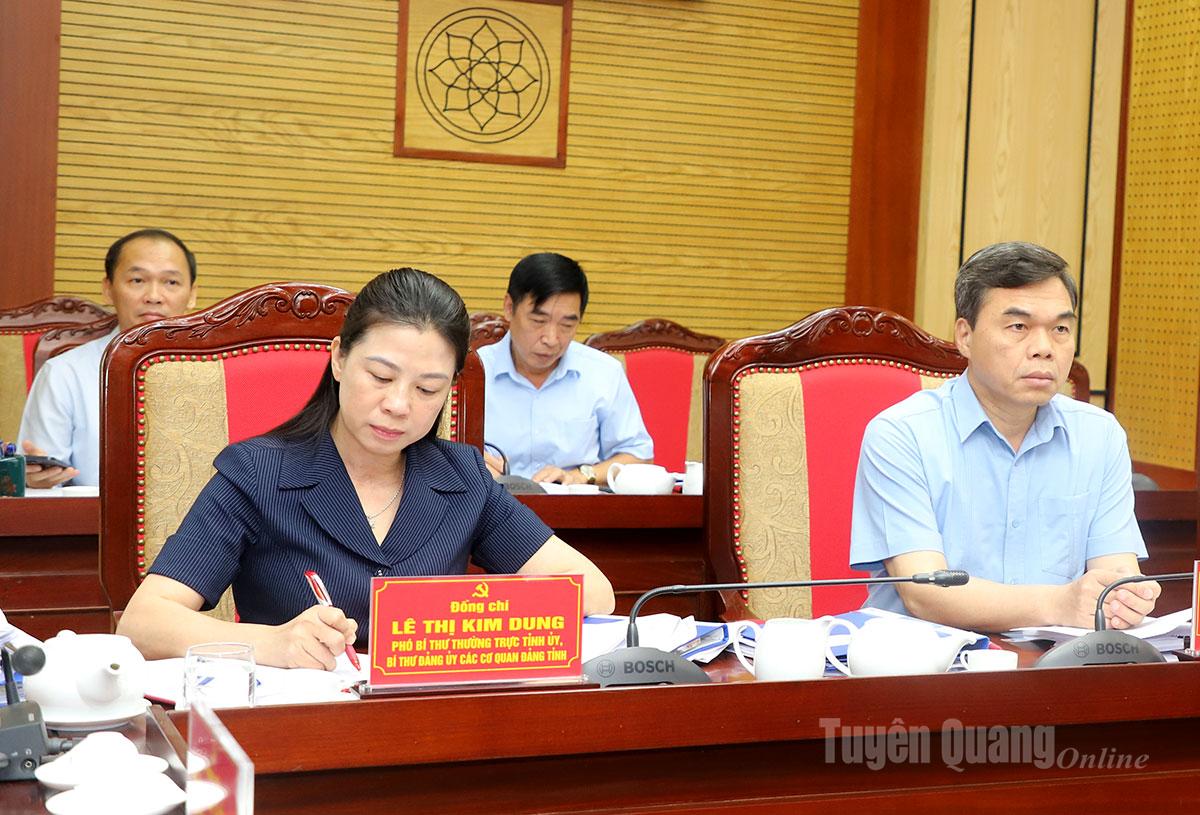 Dự họp có các đồng chí: Lê Thị Kim Dung, Phó Bí thư Thường trực Tỉnh ủy; Phan Huy Ngọc, Phó Bí thư Tỉnh ủy, Chủ tịch UBND tỉnh; Ma Thế Hồng, Phó Bí thư Tỉnh ủy, Chủ tịch Ủy ban MTTQ tỉnh; các đồng chí Uỷ viên Ban Thường vụ Tỉnh ủy; đại diện các Ban xây dựng Đảng Trung ương theo dõi tỉnh Tuyên Quang.