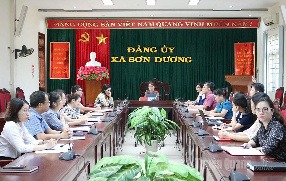 | Đại biểu dự hội nghị tại điểm cầu Đảng ủy xã Sơn Dương. |