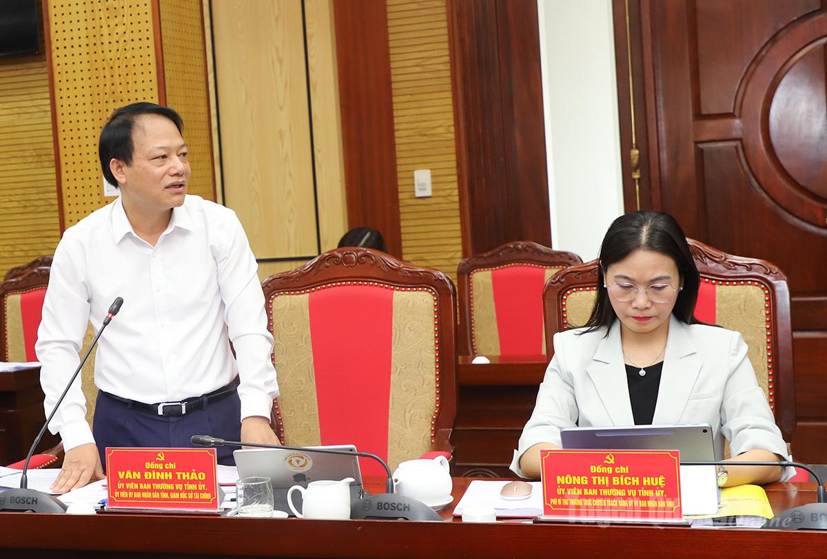 Đồng chí Vân Đình Thảo, Ủy viên Ban Thường vụ Tỉnh ủy, Giám đốc Sở Tài chính thảo luận tại hội nghị. |