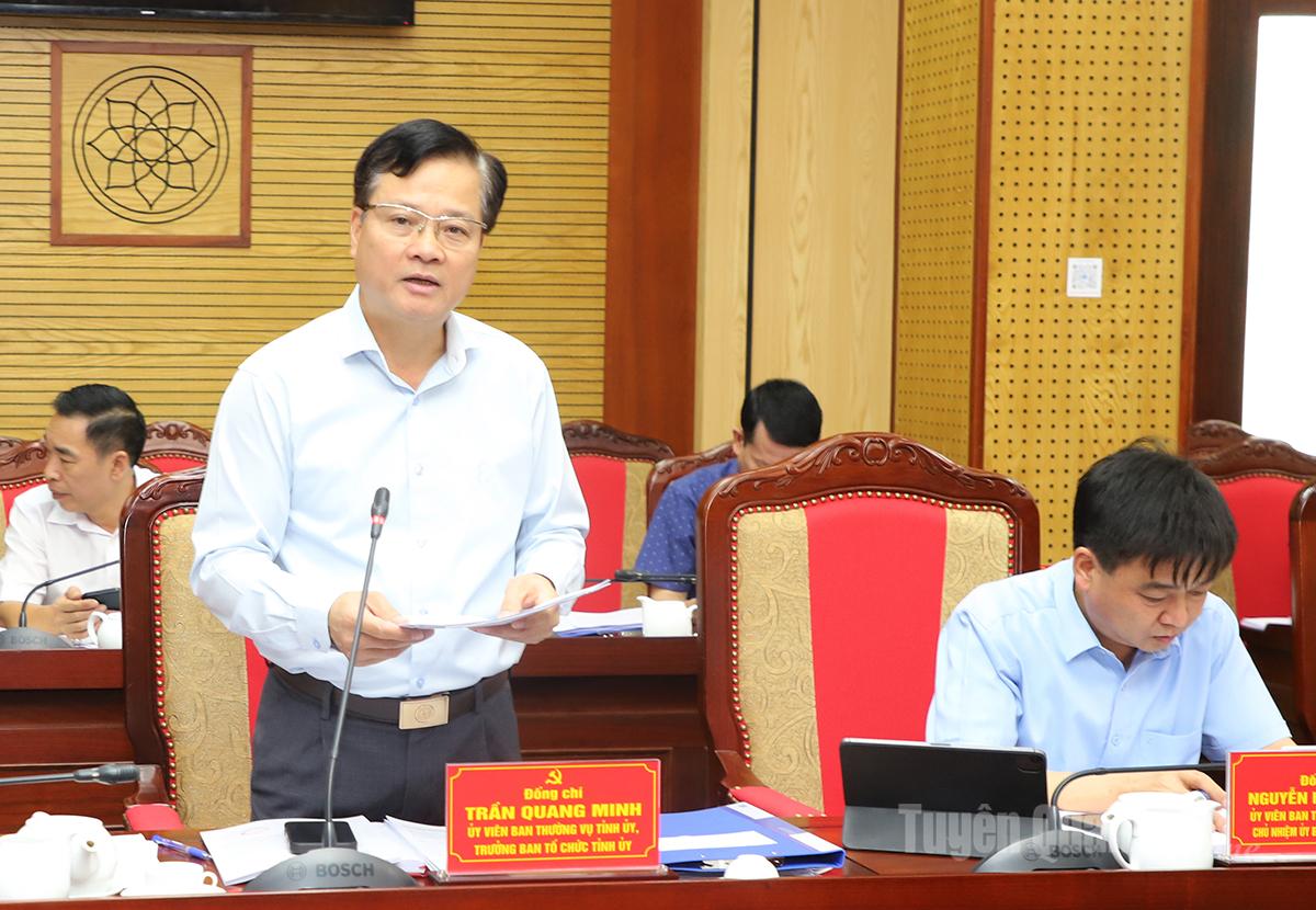 Trưởng ban Tổ chức Tỉnh ủy Trần Quang Minh thảo luận tại hội nghị. |
