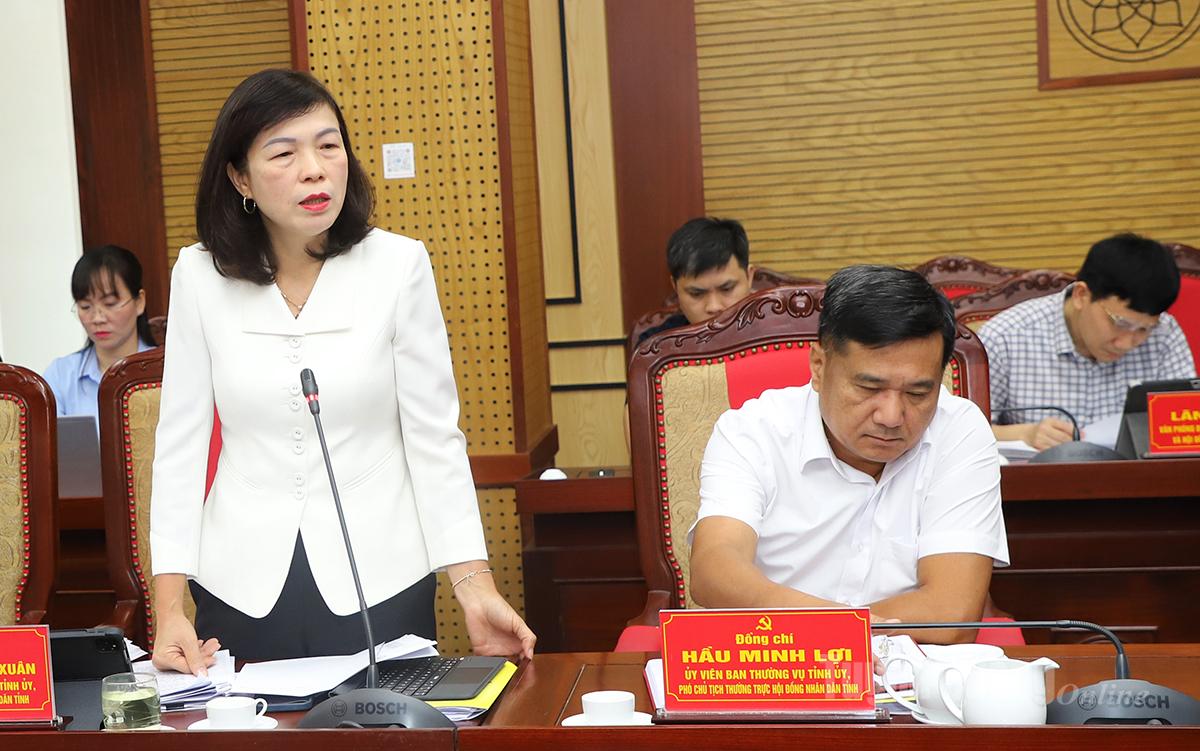 Phó Chủ tịch HĐND tỉnh Phạm Thị Minh Xuân thảo luận tại hội nghị. |