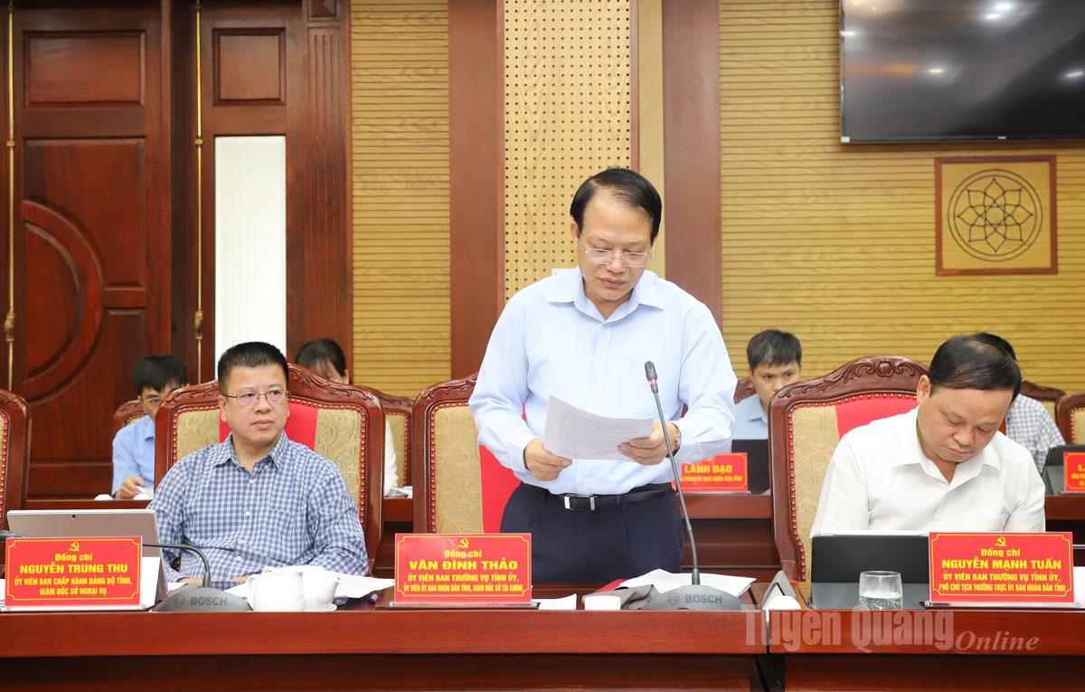 Phó Chủ tịch Thường trực UBND tỉnh Nguyễn Mạnh Tuấn thảo luận tại phiên họp.