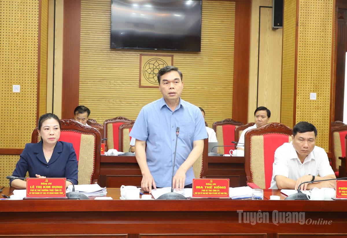 Phó Bí thư Tỉnh ủy, Chủ tịch Ủy ban MTTQ tỉnh Ma Thế Hồng thảo luận tại phiên họp