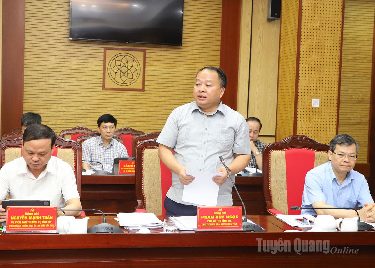 | Phó Bí thư Tỉnh ủy, Chủ tịch UBND tỉnh Phan Huy Ngọc thảo luận tại phiên họp. |