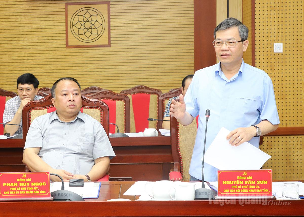 | Phó Bí thư Tỉnh ủy, Chủ tịch HĐND tỉnh Nguyễn Văn Sơn thảo luận tại phiên họp. |