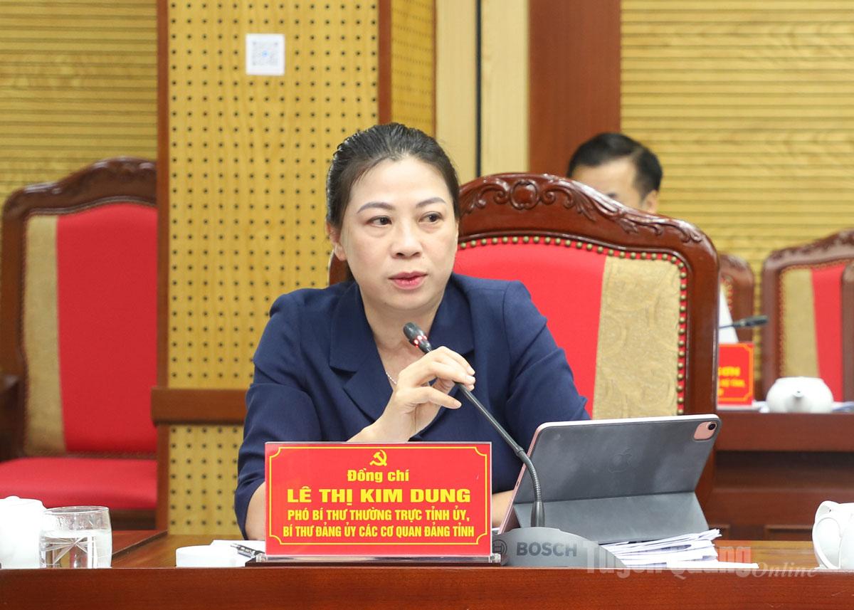 | Phó Bí thư Thường trực Tỉnh ủy Lê Thị Kim Dung thảo luận tại phiên họp |