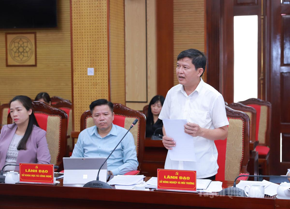 Lãnh đạo Sở Nông nghiệp và Môi trường chia sẻ một số hoạt động ứng dụng khoa học công nghệ trong lĩnh vực nông nghiệp của tỉnh. |