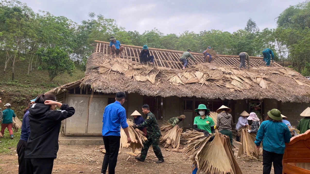 Cán bộ Mặt trận Tổ quốc, các tổ chức đoàn thể xã Chiêm Hóa tham gia giúp dân tháo dỡ nhà tạm để làm nhà ở mới