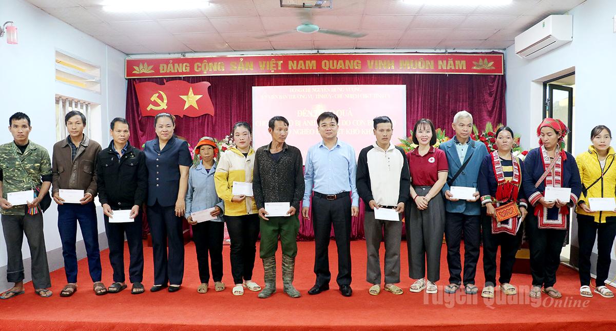 Chủ nhiệm Ủy ban Kiểm tra Tỉnh ủy Nguyễn Hưng Vượng trao quà cho các hộ có hoàn cảnh đặc biệt khó khăn trên địa bàn xã Thượng Sơn. |