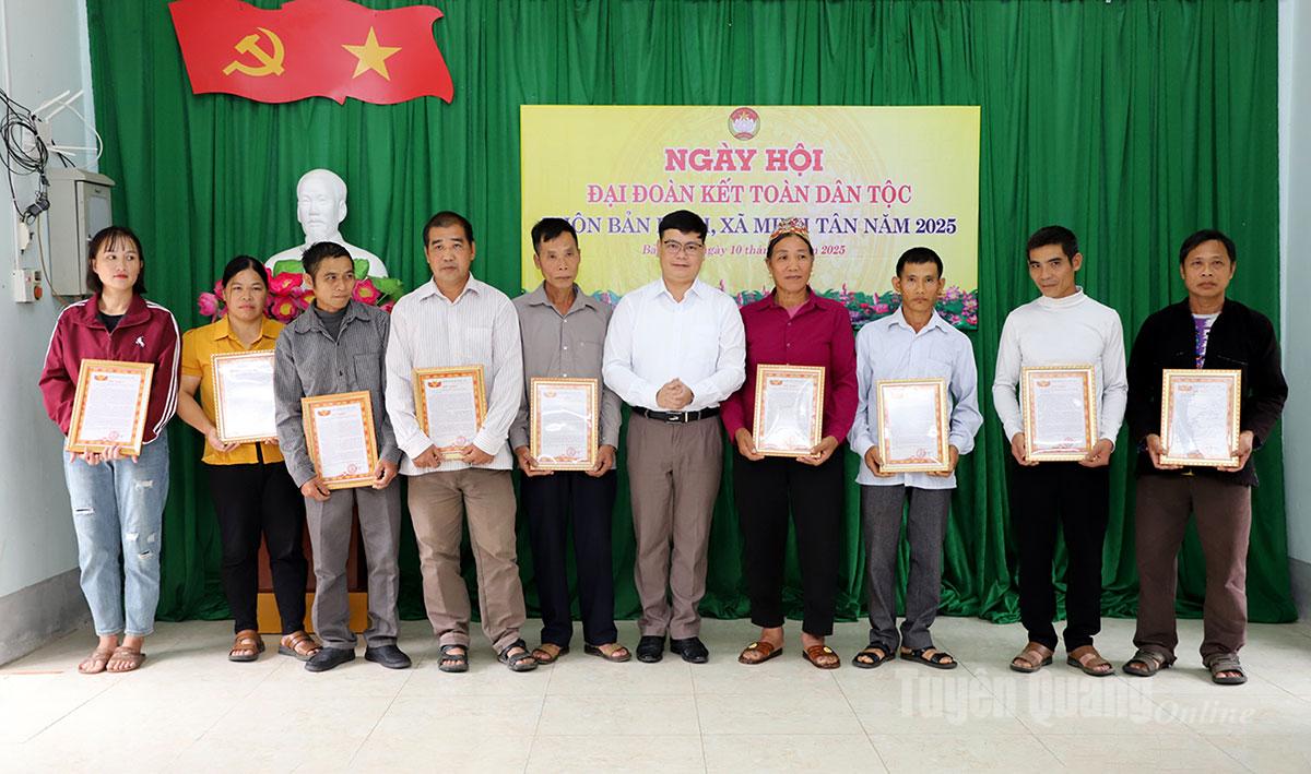 Đảng ủy xã Minh Tân trao chứng nhận cho các hộ tiêu biểu trong sản xuất kinh doanh thôn Bản Hình