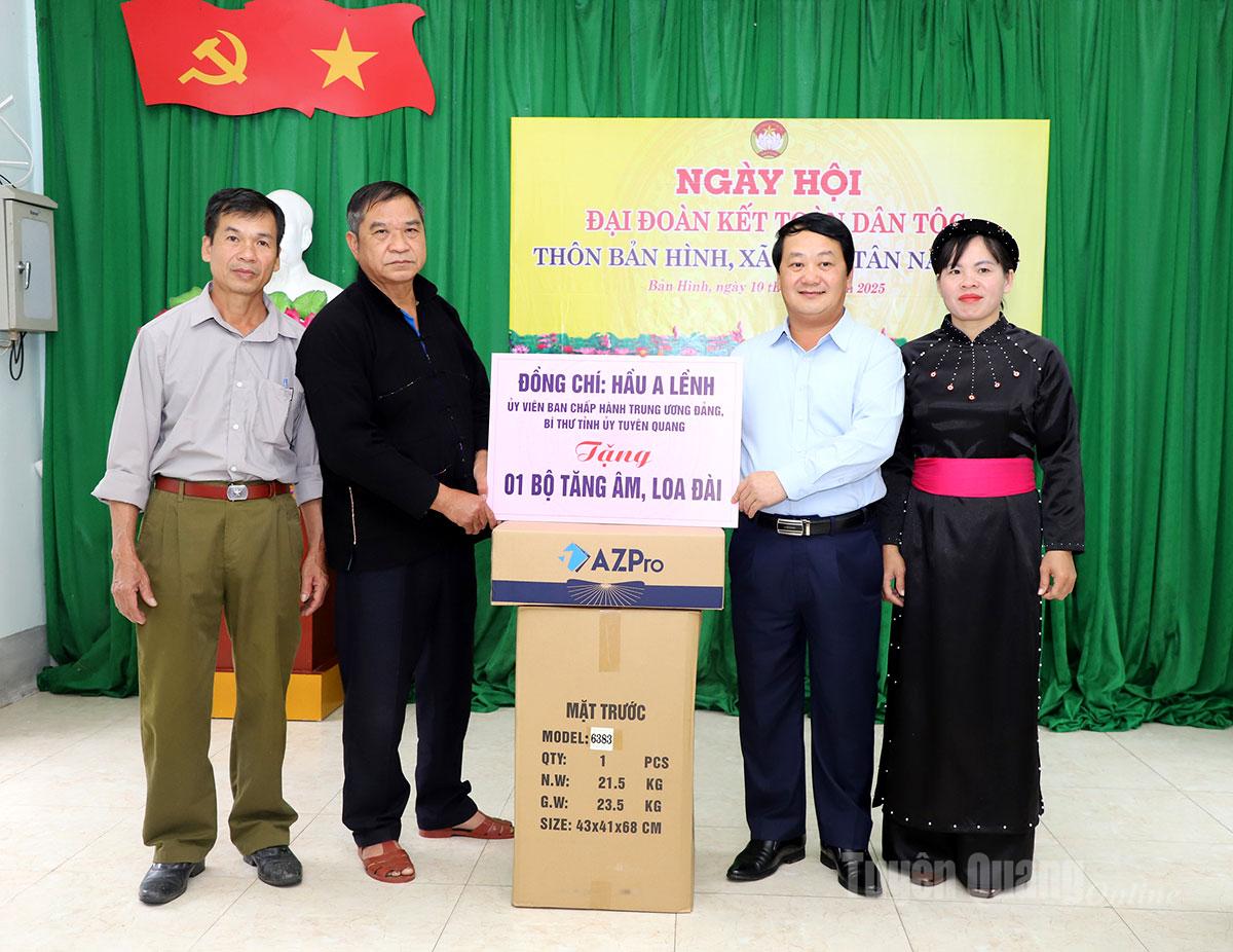 Dịp này, Bí thư Tỉnh uỷ Hầu A Lềnh đã trao 420 triệu đồng trích từ Quỹ “Vì người nghèo” hỗ trợ 7 hộ gia đình trong thôn chưa có nhà ở kiên cố, mỗi hộ 60 triệu đồng để làm nhà ở mới; trao 1 bộ tăng âm loa đài để thôn Bản Hình tăng cường công tác thông tin, tuyên truyền, cổ động các phong trào thi đua.