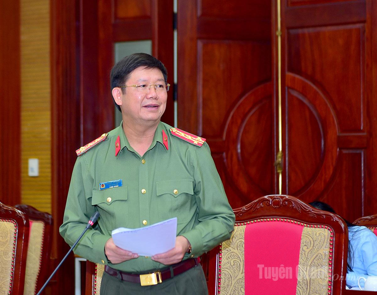 | Lãnh đạo Công an tỉnh phát biểu làm rõ thêm những nội dung liên quan về đầu tư xây dựng nhà ở cho lực lượng vũ trang nhân dân tại tổ 9, phường An Tường. |