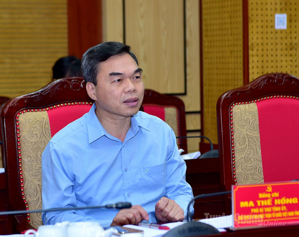 | Đồng chí Phó Bí thư Tỉnh ủy, Chủ tịch Ủy ban MTTQ tỉnh Ma Thế Hồng phát biểu ý kiến tại cuộc họp. |