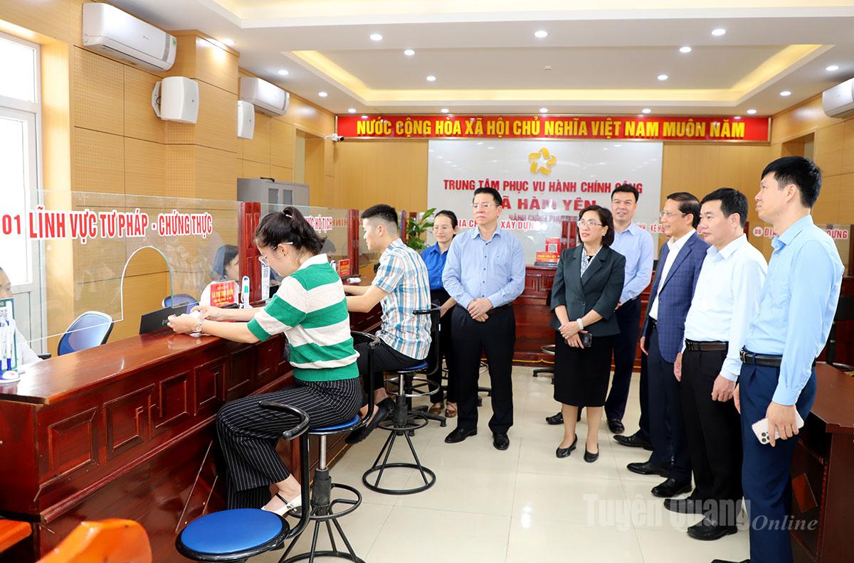 Phó Trưởng Ban Tuyên giáo và Dân vận Trung ương Định Thị Mai thăm Trung tâm phục vụ hành chính công xã Hàm Yên.