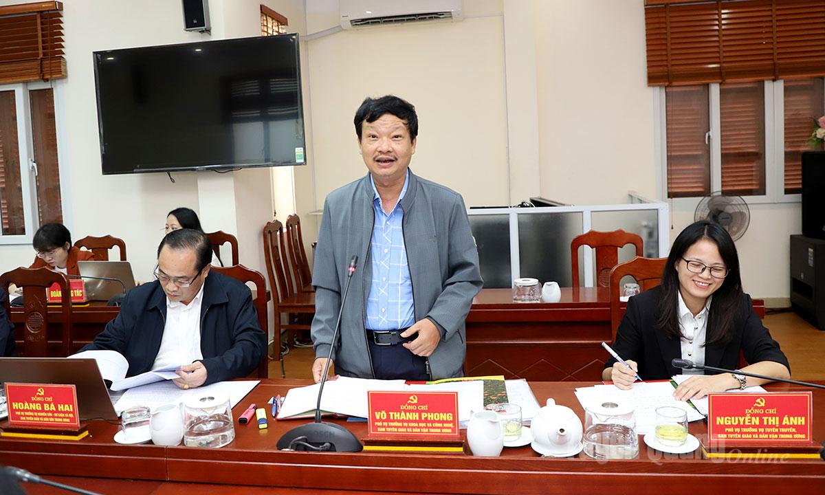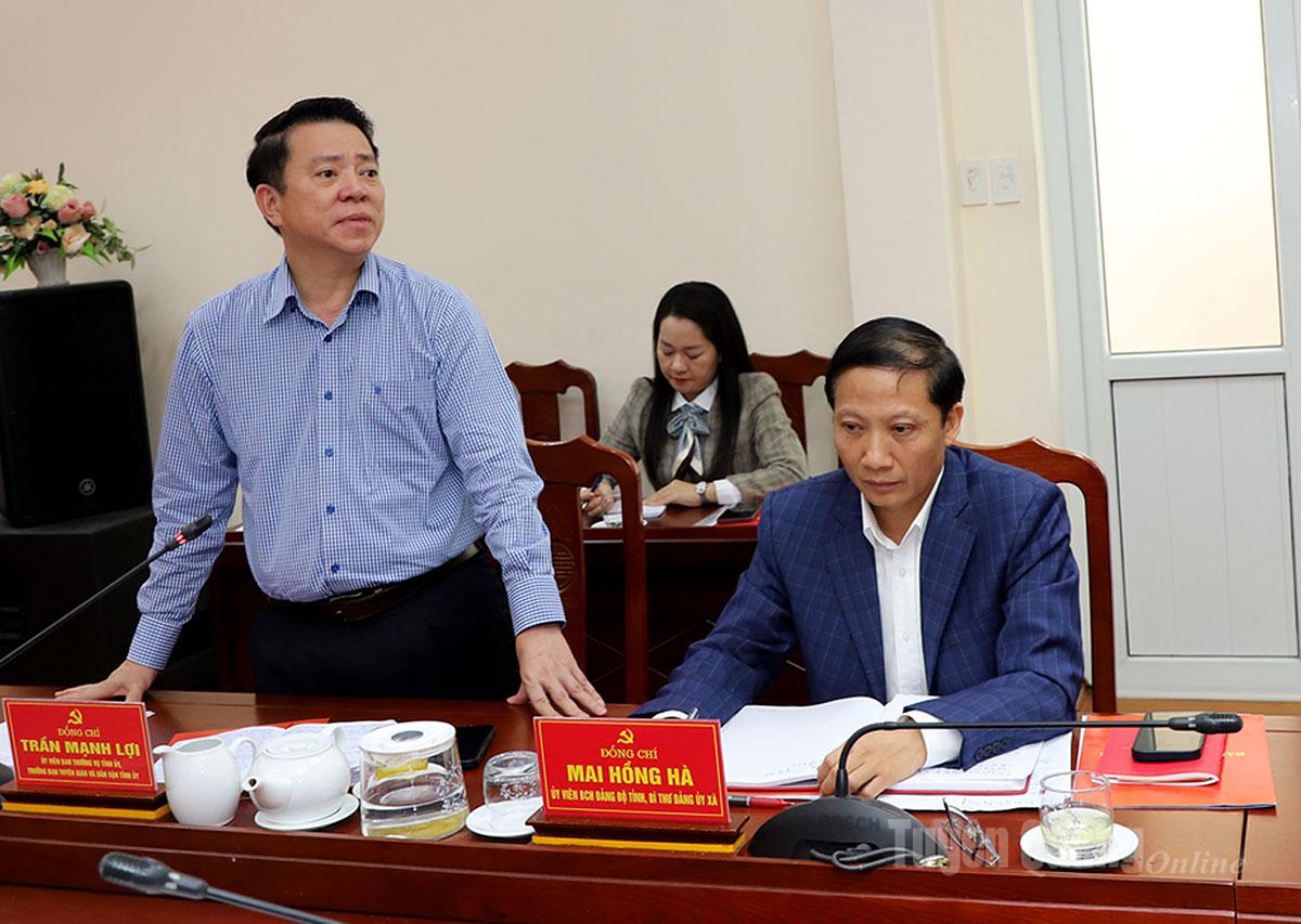 | Trưởng Ban Tuyên giáo và Dân vận Tỉnh ủy Trần Mạnh Lợi thảo luận tại buổi làm việc. |