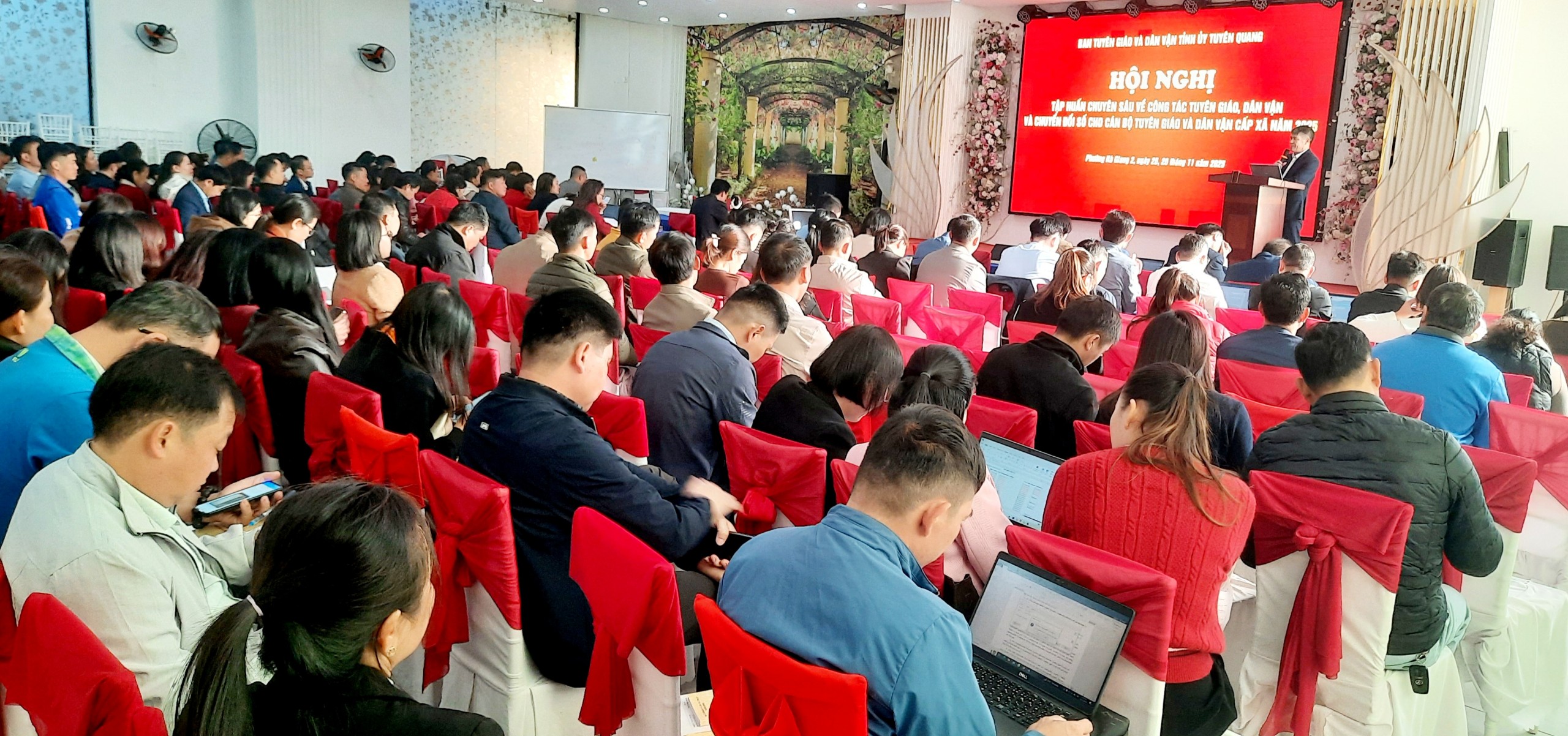 Trong thời gian 02 ngày 25 và 26/11, Ban Tuyên giáo và Dân vận Tỉnh ủy tổ chức Hội nghị tập huấn chuyên sâu về công tác tuyên giáo, dân vận và chuyển đổi số cho cán bộ tuyên giáo và dân vận cho 73 xã, phường thuộc địa bàn tỉnh Hà Giang (cũ), tại phường Hà Giang 2 với trên 200 học viên tham dự. Tại Hội nghị các học viên đã được các báo cáo viên cấp tỉnh là lãnh đạo Ban, trưởng, phó các phòng Ban Tuyên giáo và Dân vận Tỉnh ủy thông tin, trao đổi, thảo luận về 9 chuyên đề gồm: Tổng quan về công tác tuyên giáo và dân vận của Đảng trong tình hình hiện nay; công tác giáo dục lý luận chính trị và giáo dục truyền thống cách mạng ở cơ sở; thực hiện dân chủ ở cơ sở; công tác dân vận vùng đồng bào dân tộc thiểu số và đồng bào có đạo; nghiệp vụ công tác tuyên truyền miệng, cổ động và nắm bắt dư luận xã hội; hoạt động ban chỉ đạo bảo vệ nền tảng tư tưởng của Đảng, đấu tranh phản bác các quan điểm sai trái, thù địch; công tác khoa giáo – văn nghệ ở cơ sở; quy trình xây dựng mô hình “Dân vận khéo” và phương pháp nắm tình hình nhân dân; ứng dụng chuyển đổi số Khám phá và khai thác zalo OA “TG&DV Tuyên Quang”.