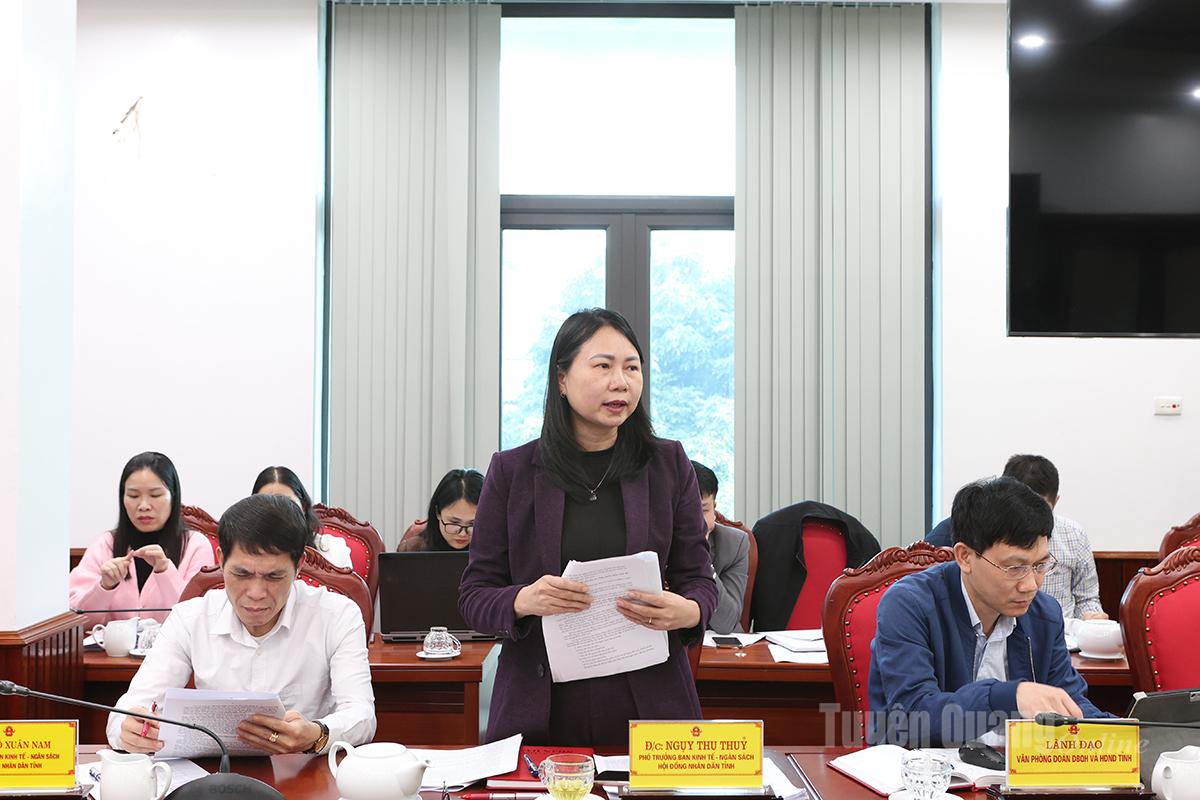 Tại cuộc họp, Ban Kinh tế - Ngân sách HĐND tỉnh đã thẩm tra dự thảo nghị quyết về: Quy định nguyên tắc, tiêu chí và định mức phân bổ dự toán chi thường xuyên ngân sách địa phương năm 2026 trên địa bàn tỉnh Tuyên Quang; quy định nguyên tắc, tiêu chí và định mức phân bổ vốn đầu tư công nguồn ngân sách địa phương giai đoạn 2026 - 2030 trên địa bàn tỉnh Tuyên Quang; quy định phân cấp nguồn thu ngân sách nhà nước, nhiệm vụ chi ngân sách địa phương và tỷ lệ phần trăm phân chia các khoản thu giữa ngân sách cấp tỉnh và ngân sách cấp xã trên địa bàn tỉnh Tuyên Quang; quy định mức thu, chế độ thu, nộp và quản lý lệ phí đăng ký kinh doanh trên địa bàn tỉnh Tuyên Quang.