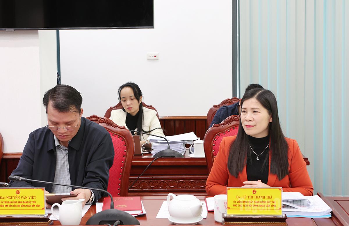 | Đồng chí Lê Thị Thanh Trà, Uỷ viên BCH Đảng bộ tỉnh, Phó Chủ tịch HĐND tỉnh phát biểu ý kiến. |