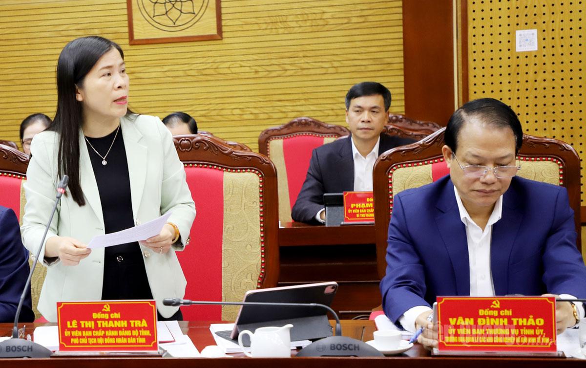 | Phó Chủ tịch HĐND tỉnh Lê Thị Thanh Trà thảo luận tại phiên họp. |