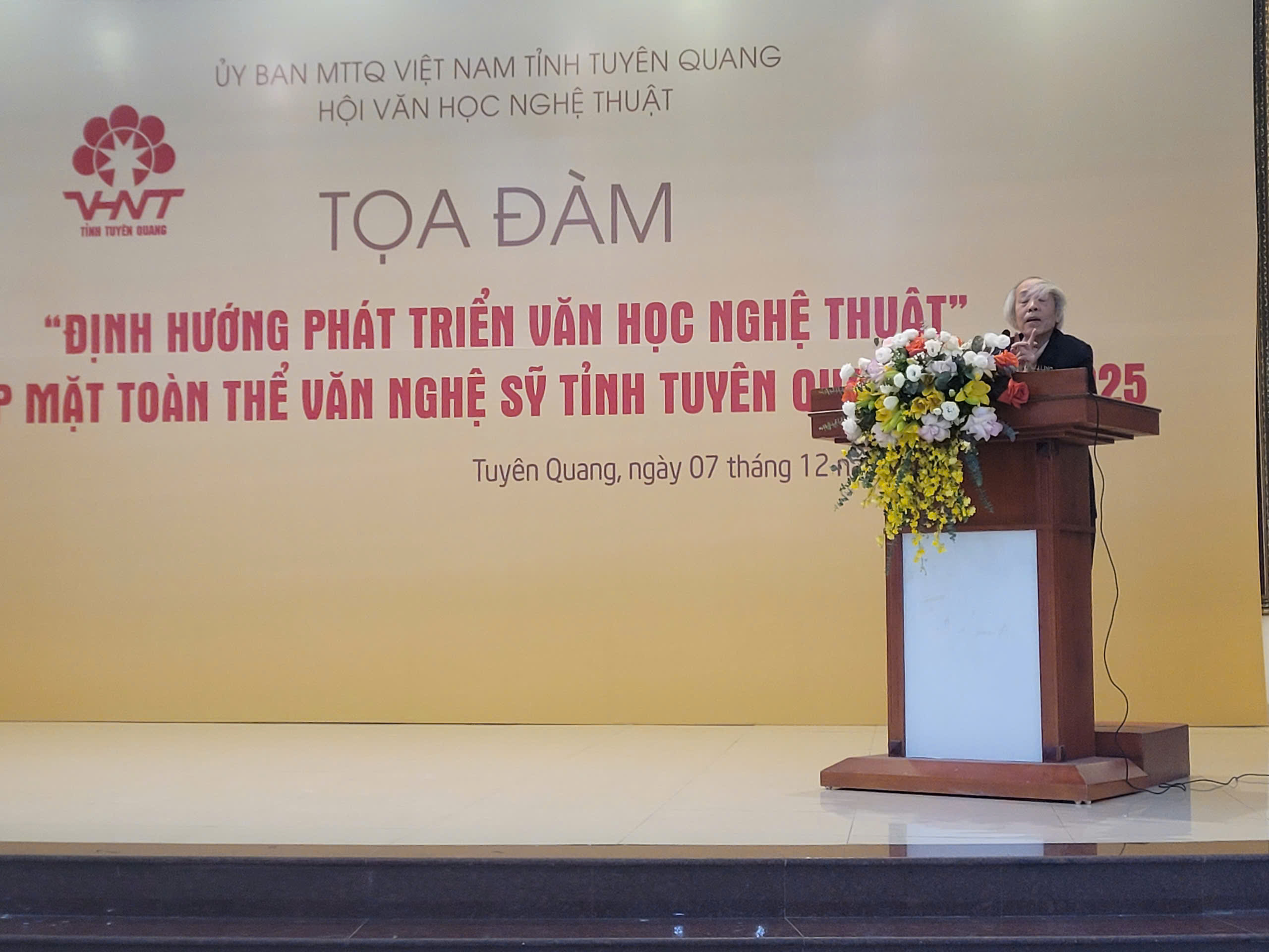 Phát biểu khai mạc, nhà thơ Tạ Bá Hương, Chủ tịch Hội Văn học nghệ thuật tỉnh Tuyên Quang nhấn mạnh: Việc tổ chức Tọa đàm lần này nhằm nhận diện, đánh giá rõ hơn vai trò của văn học, nghệ thuật Tuyên Quang trong giai đoạn đất nước chuyển mình mạnh mẽ; đồng thời dự báo xu hướng phát triển trong tương lai, đề xuất các cơ chế, chính sách thúc đẩy văn học nghệ thuật phù hợp với yêu cầu của thời đại.