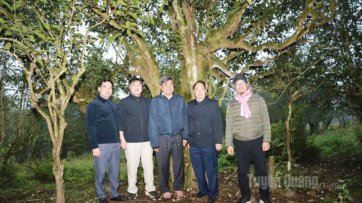 | Đoàn công tác của Bộ Nông nghiệp và Môi trường khảo sát rừng chè Shan tuyết cổ thụ trên địa bàn xã Hồ Thầu. |