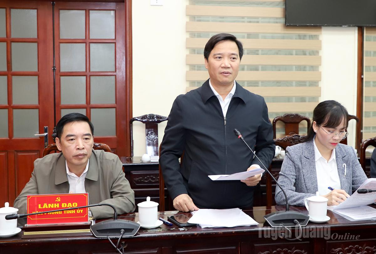 Đồng chí Hoàng Nhị Sơn, Ủy viên BCH Đảng bộ tỉnh, Chánh Văn phòng Tỉnh ủy phát biểu tại hội nghị.