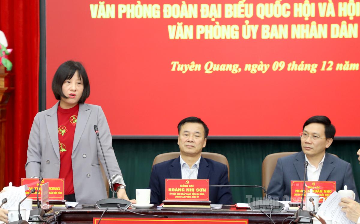 Chánh Văn phòng UBND tỉnh Lại Thị Hương phát biểu tại hội nghị.