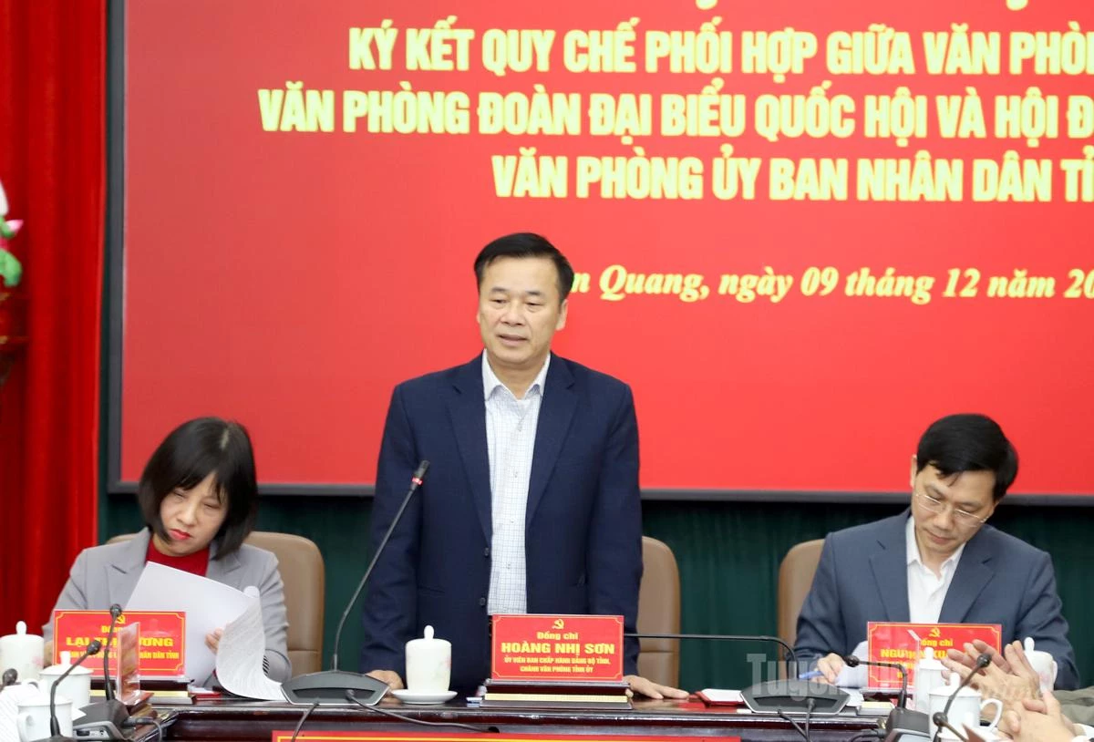 Chiều 9-12, Văn phòng Tỉnh ủy, Văn phòng Đoàn ĐBQH và HĐND tỉnh, Văn phòng UBND tỉnh tổ chức Hội nghị ký kết quy chế phối hợp nhằm góp phần nâng cao chất lượng, hiệu quả công tác tham mưu, phục vụ các hoạt động của Tỉnh ủy, Ban Thường vụ Tỉnh ủy, HĐND tỉnh, UBND tỉnh, Đoàn đại biểu Quốc hội tỉnh và các đồng chí Thường trực Tỉnh ủy, Thường trực HĐND tỉnh, lãnh đạo UBND, lãnh đạo Đoàn ĐBQH tỉnh, góp phần nâng cao chất lượng hoạt động của hệ thống chính trị tỉnh.