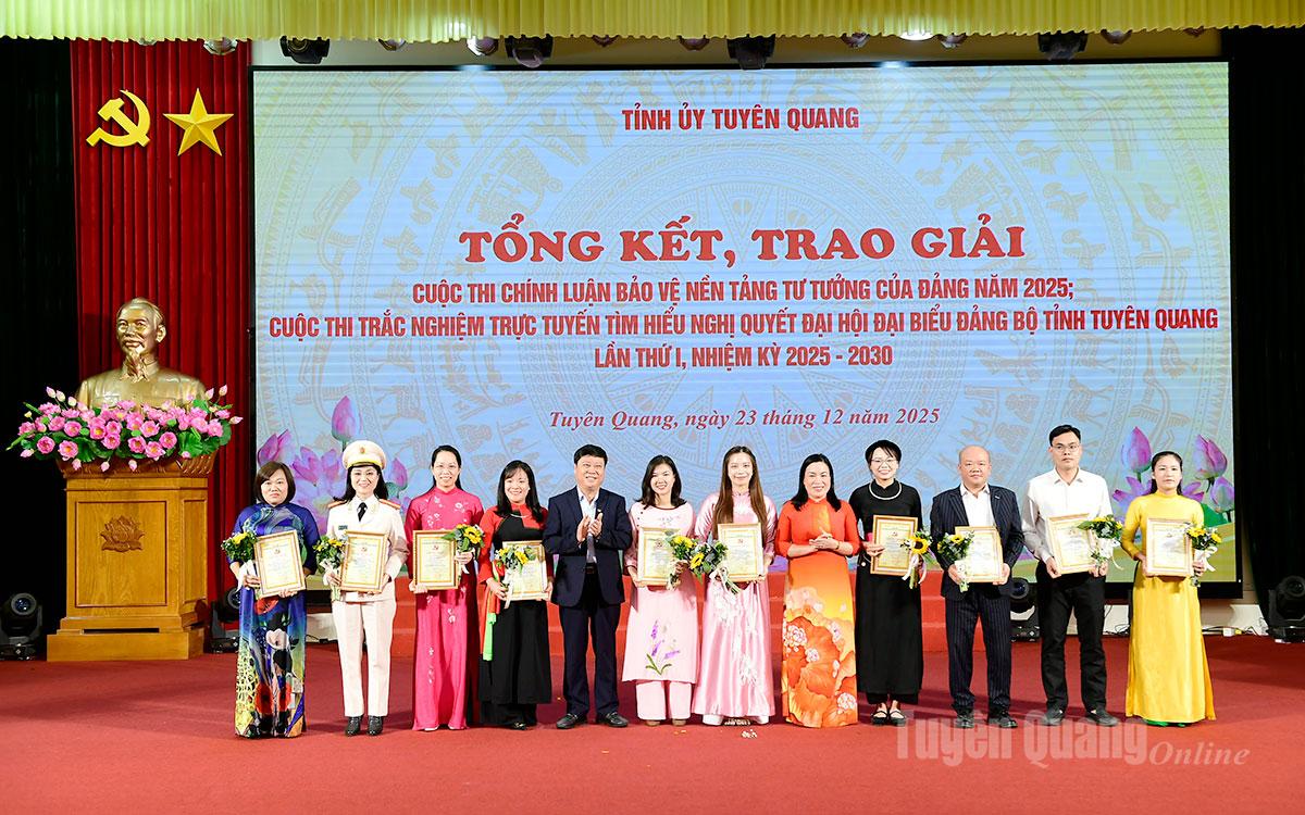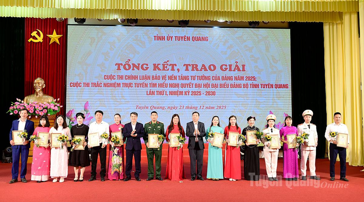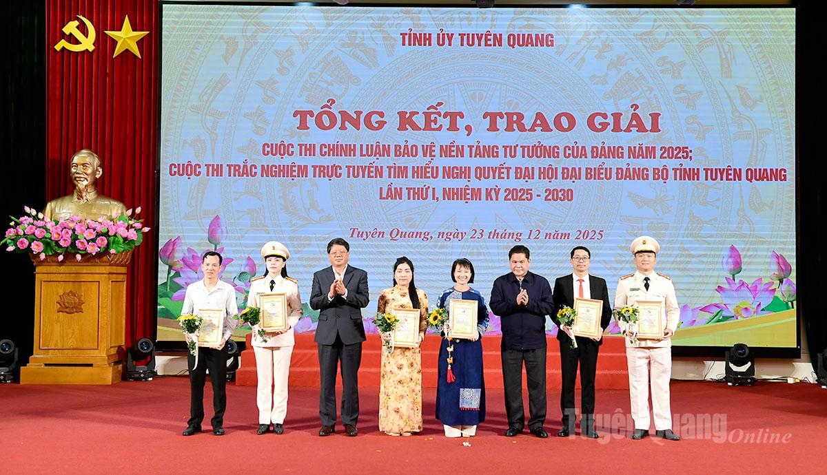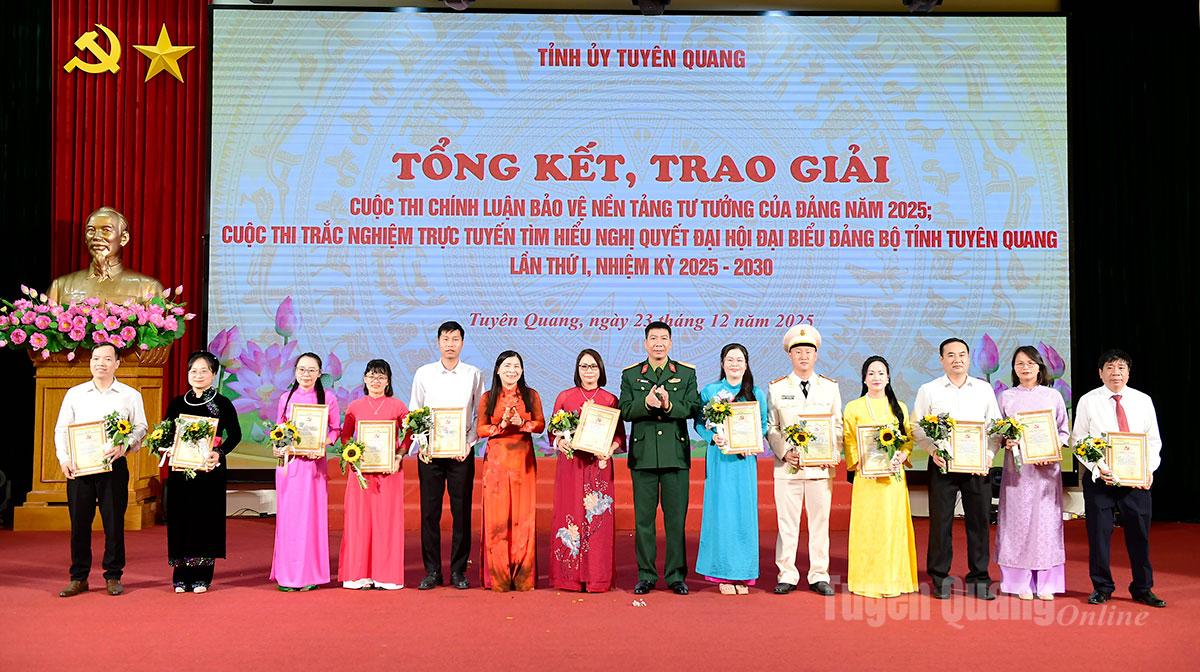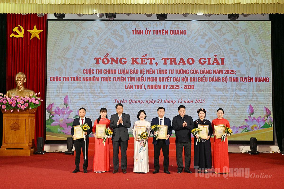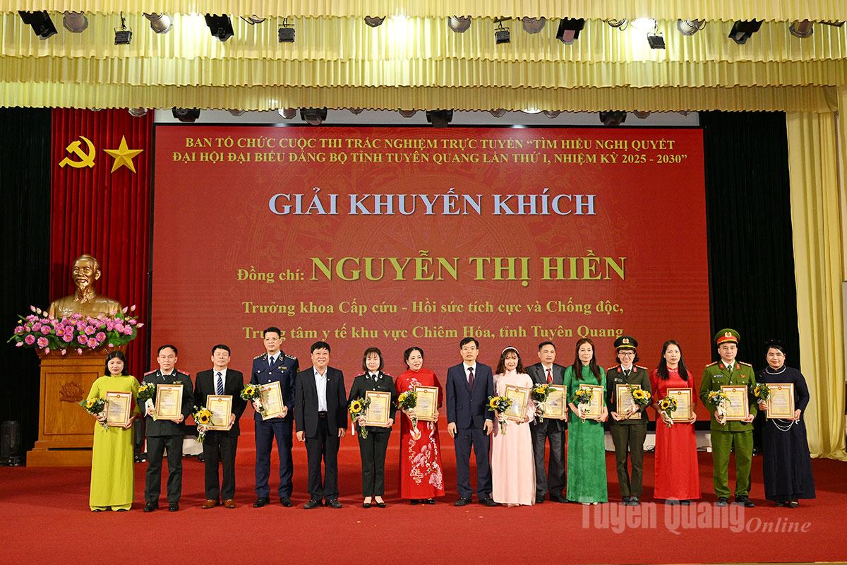 Ban Tổ chức Cuộc thi trắc nghiệm trực tuyến “Tìm hiểu Nghị quyết Đại hội Đại biểu Đảng bộ tỉnh Tuyên Quang lần thứ Nhất" đã công nhận và trao 48 giải thưởng cho các cá nhân, gồm: 3 giải Nhất, 6 giải Nhì, 9 giải Ba và 30 giải Khuyến khích.