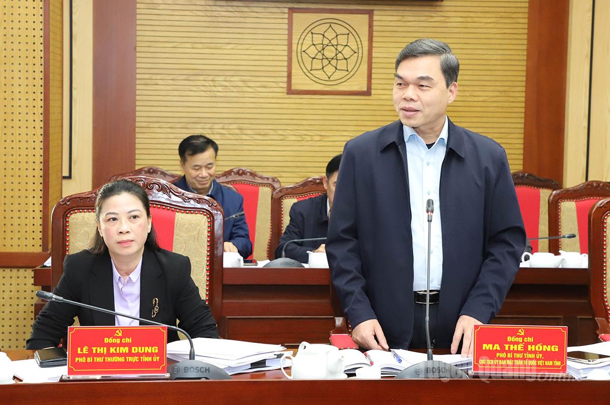 | Phó Bí thư Tỉnh ủy, Chủ tịch Ủy ban MTTQ tỉnh Ma Thế Hồng phát biểu tại phiên họp. |