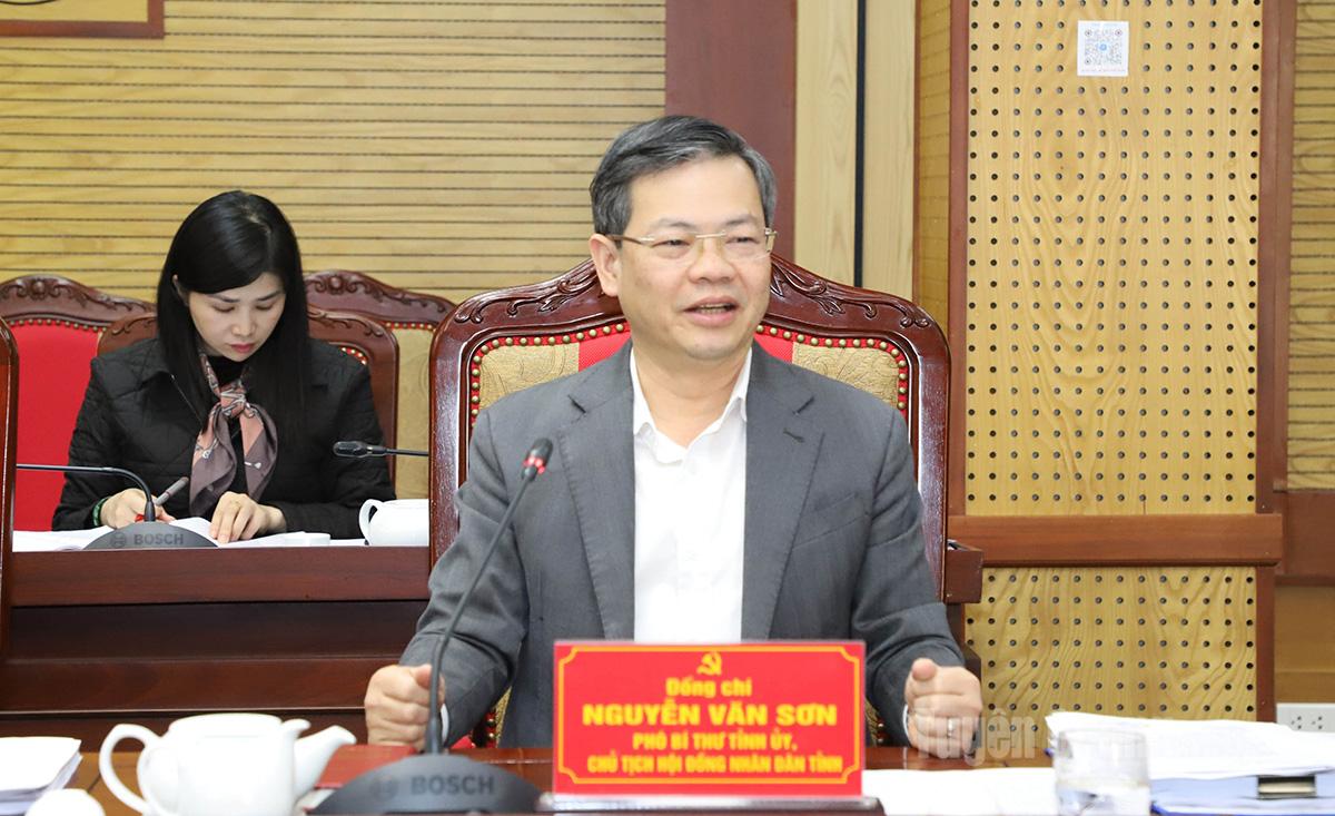 | Phó Bí thư Tỉnh ủy, Chủ tịch HĐND tỉnh Nguyễn Văn Sơn phát biểu tại phiên họp. |