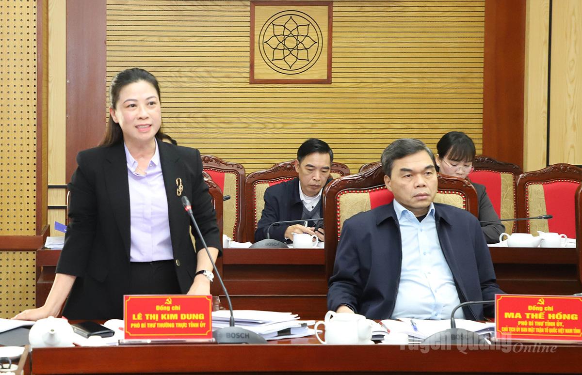 | Phó Bí thư Thường trực Tỉnh ủy Lê Thị Kim Dung phát biểu tại phiên họp. |
