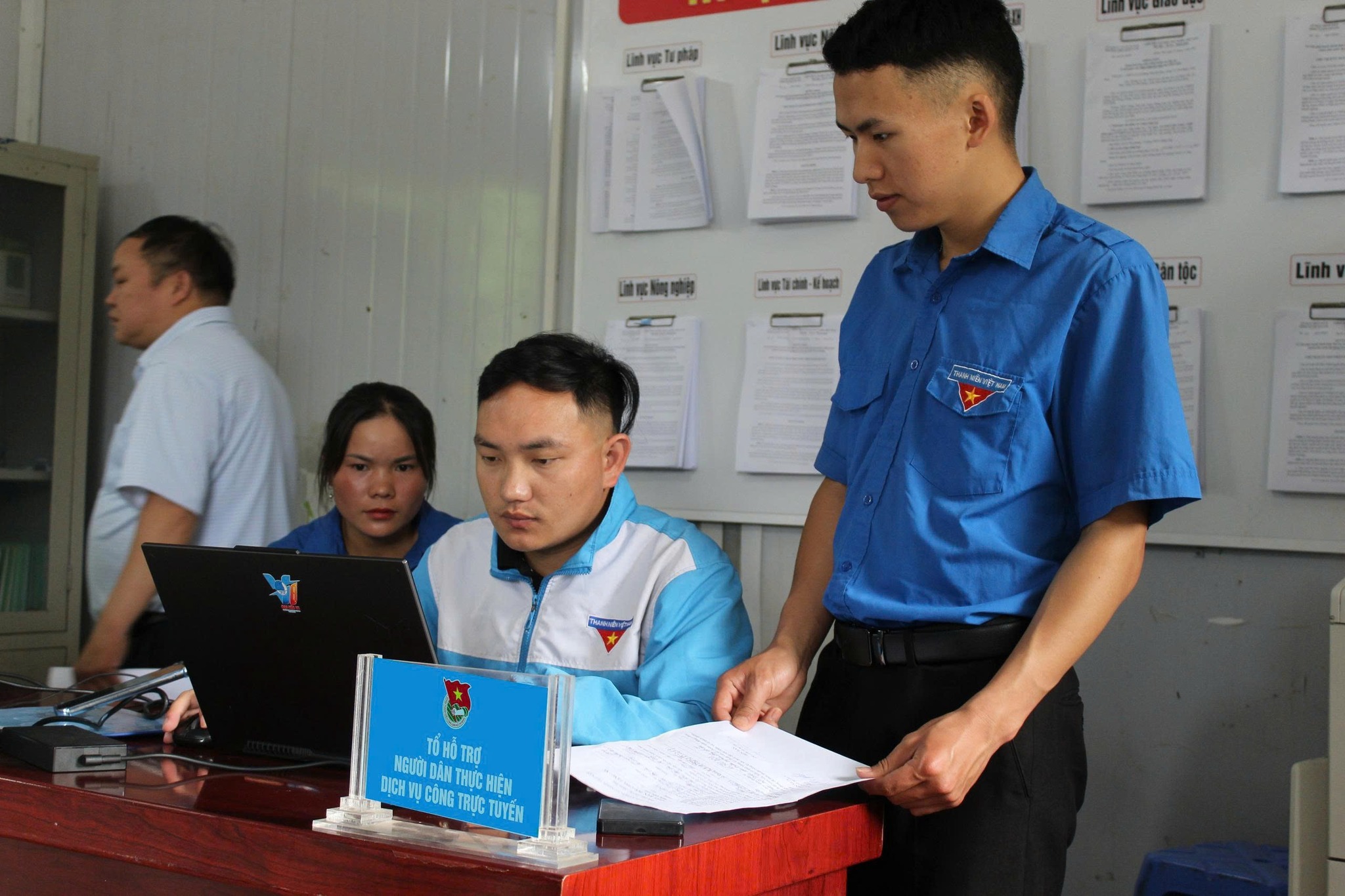 Đội hình hỗ trợ người dân thực hiện dịch vụ công trực tuyến Đoàn TNCS Hồ Chí Minh xã Lũng Phìn