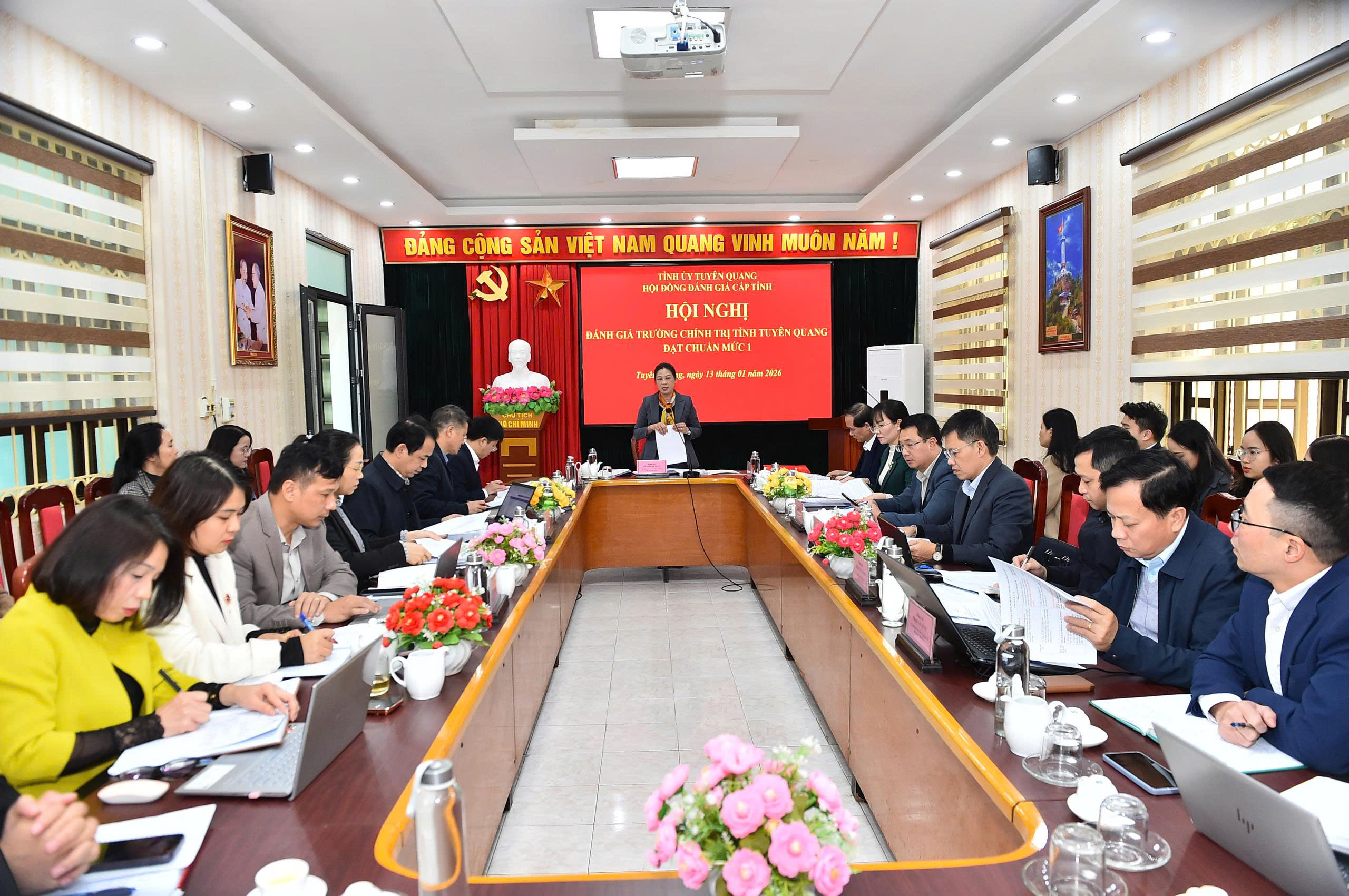 Ngày 13/01/2026, tại Trường Chính trị tỉnh, Hội đồng đánh giá cấp tỉnh đã tổ chức họp thẩm định hồ sơ tự đánh giá đạt chuẩn mức 1 của Trường Chính trị tỉnh Tuyên Quang. Đồng chí Lê Thị Kim Dung, Phó Bí thư Thường trực Tỉnh ủy, Chủ tịch Hội đồng đánh giá cấp tỉnh chủ trì Hội nghị. Tham dự Hội nghị có các đồng chí thư ký, ủy viên Hội đồng đánh giá cấp tỉnh; lãnh đạo, giảng viên Trường Chính trị tỉnh.